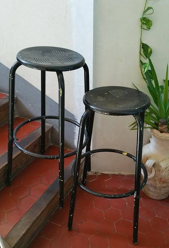 paire de tabourets en tole perfore sur le dessus peinture a revoir 28e les deux
