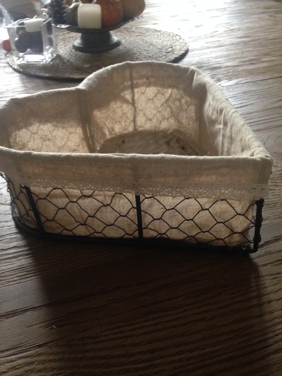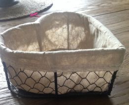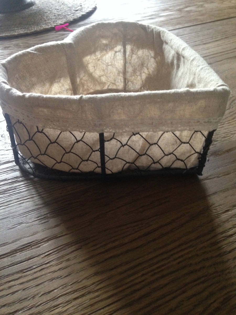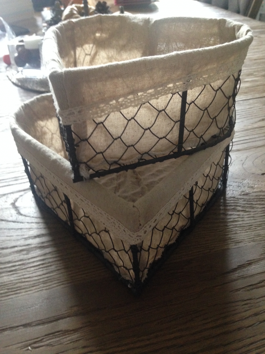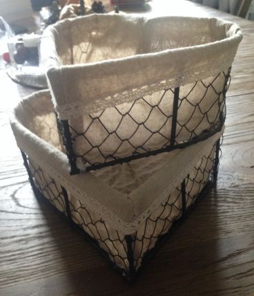 Corbeilles en forme de cœur, intérieur toile de jute, extérieur "grillage".
