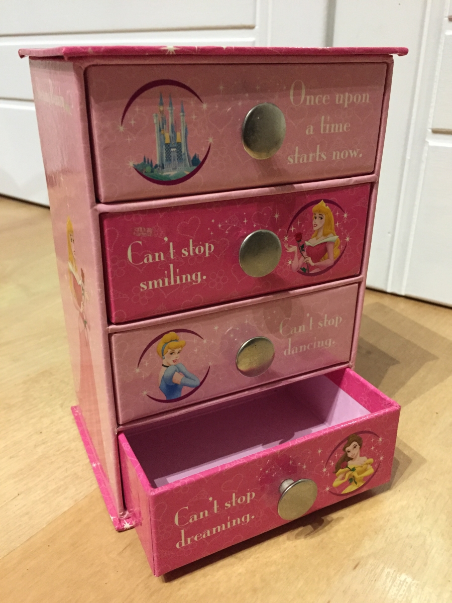 Jolie petite commode (17 x 11 cm) des princesses Walt Disney. Objet de la collection de 2000 en parfait état (comme neuf).