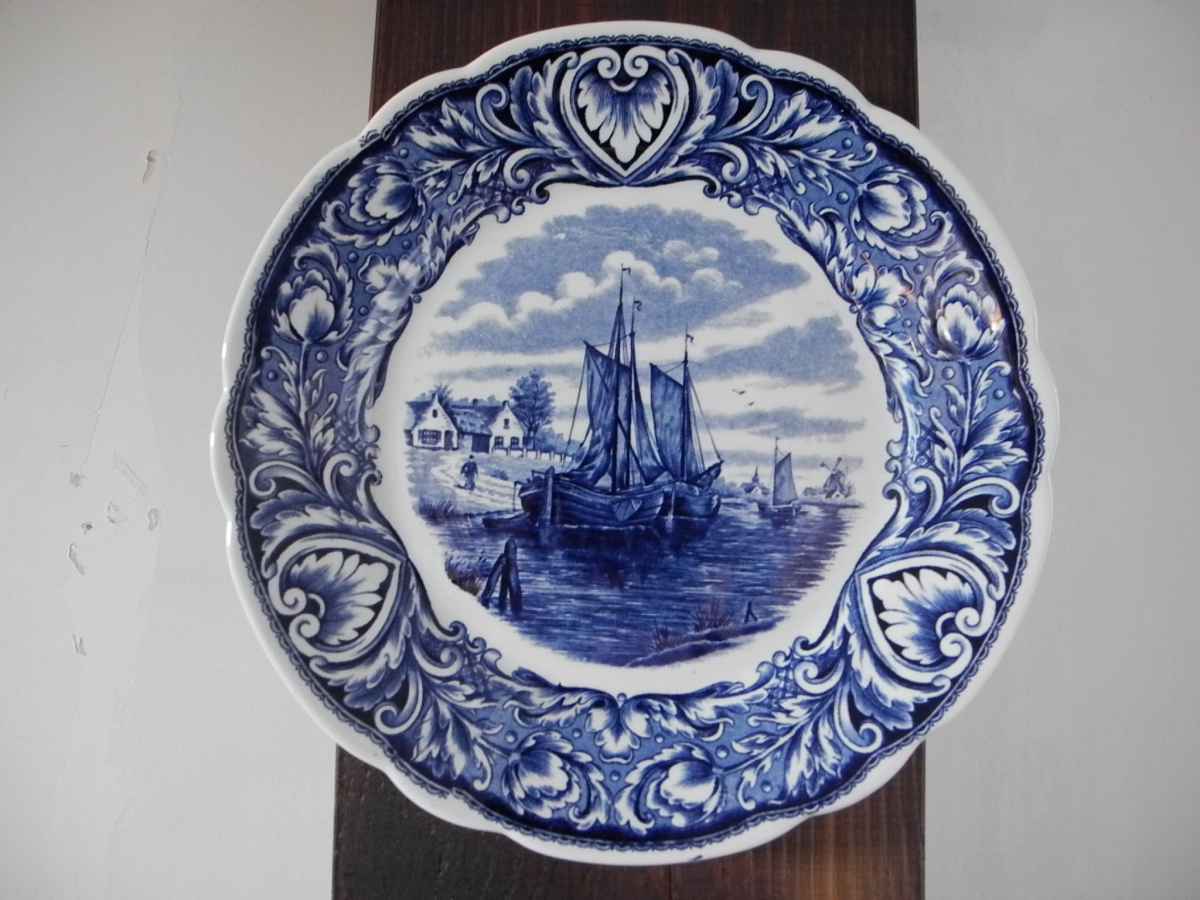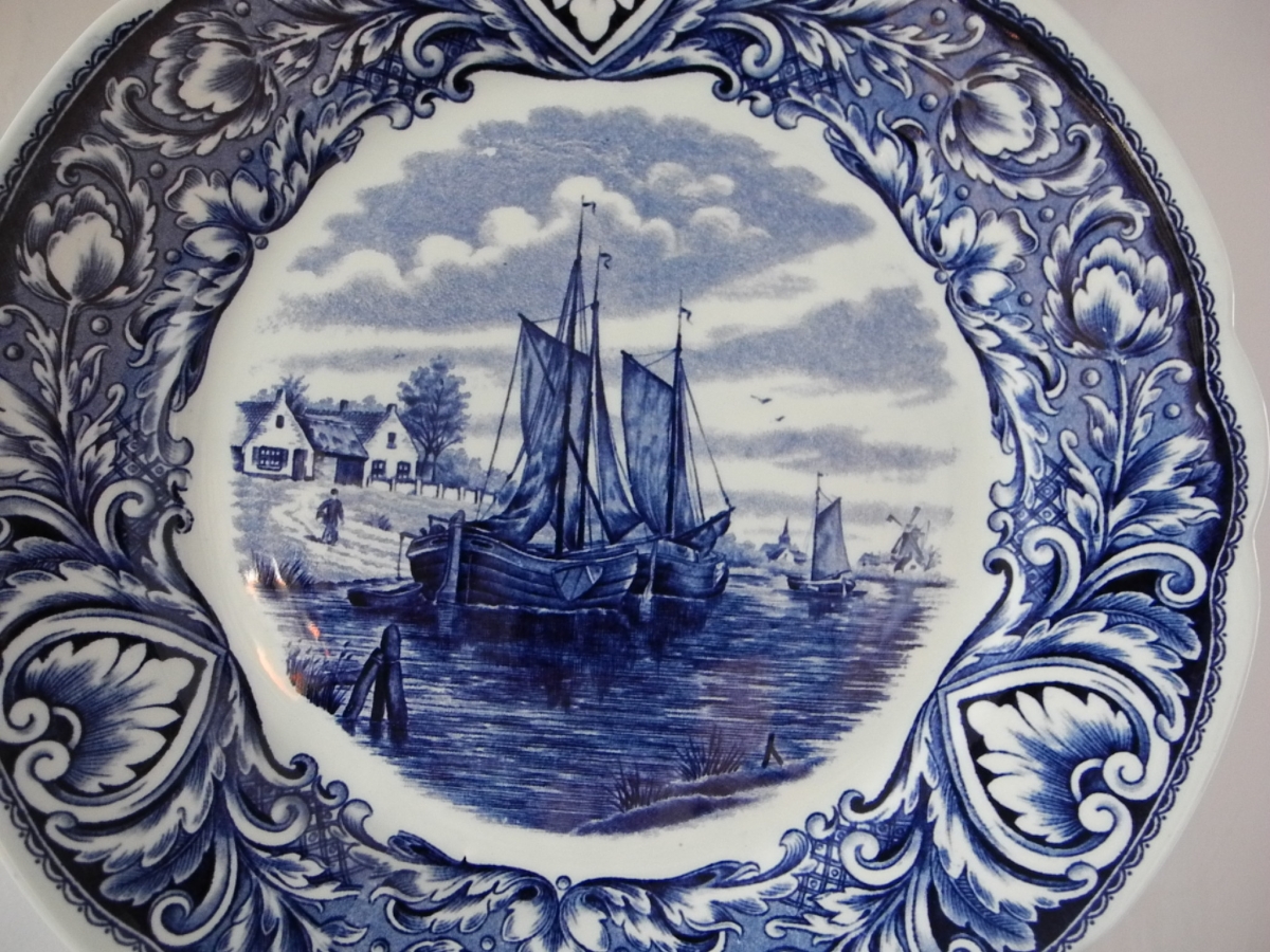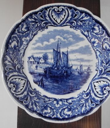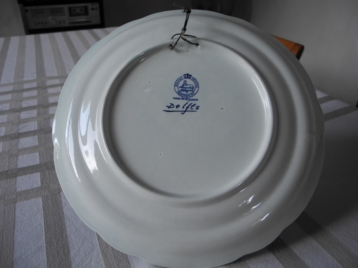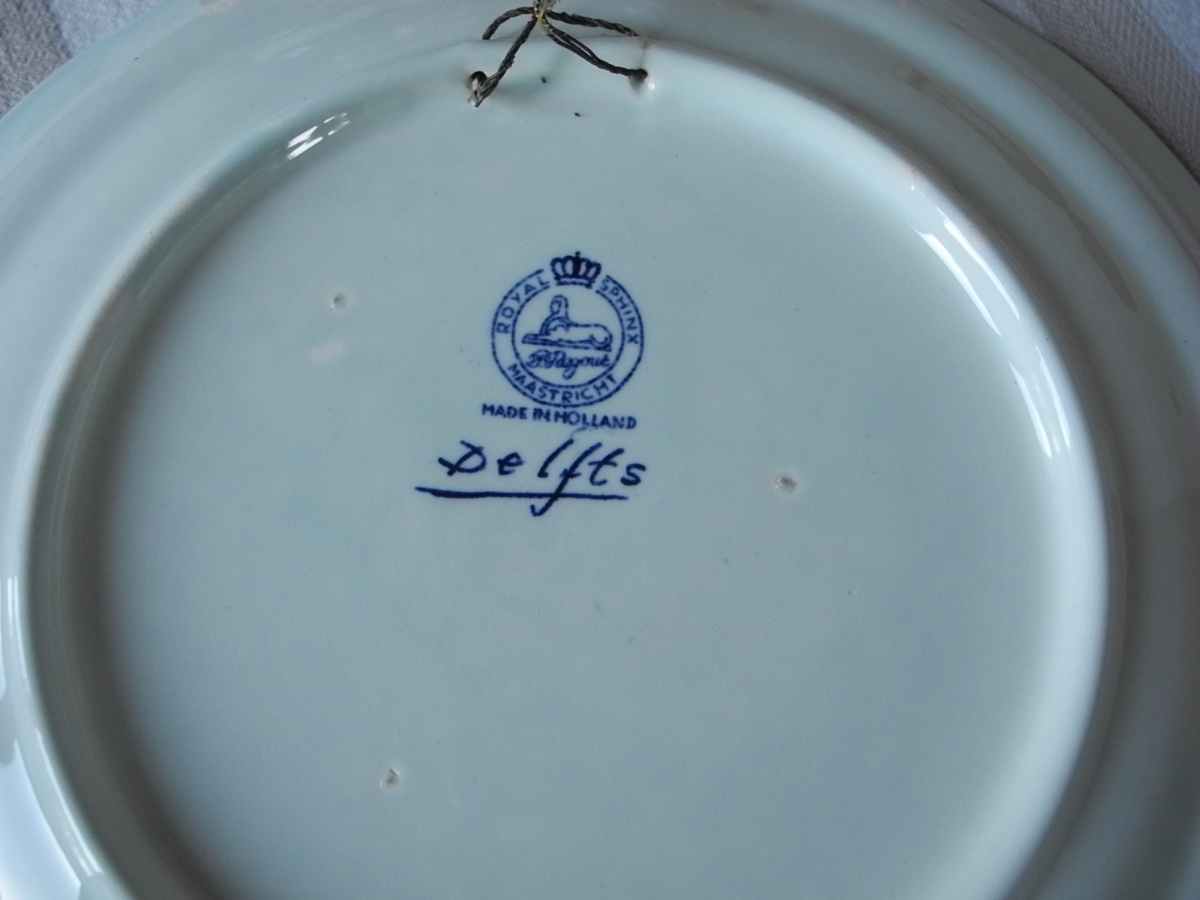 Assiette murale en faïence bleue et blanche DELFTS par Royal Sphinx, Maastricht.