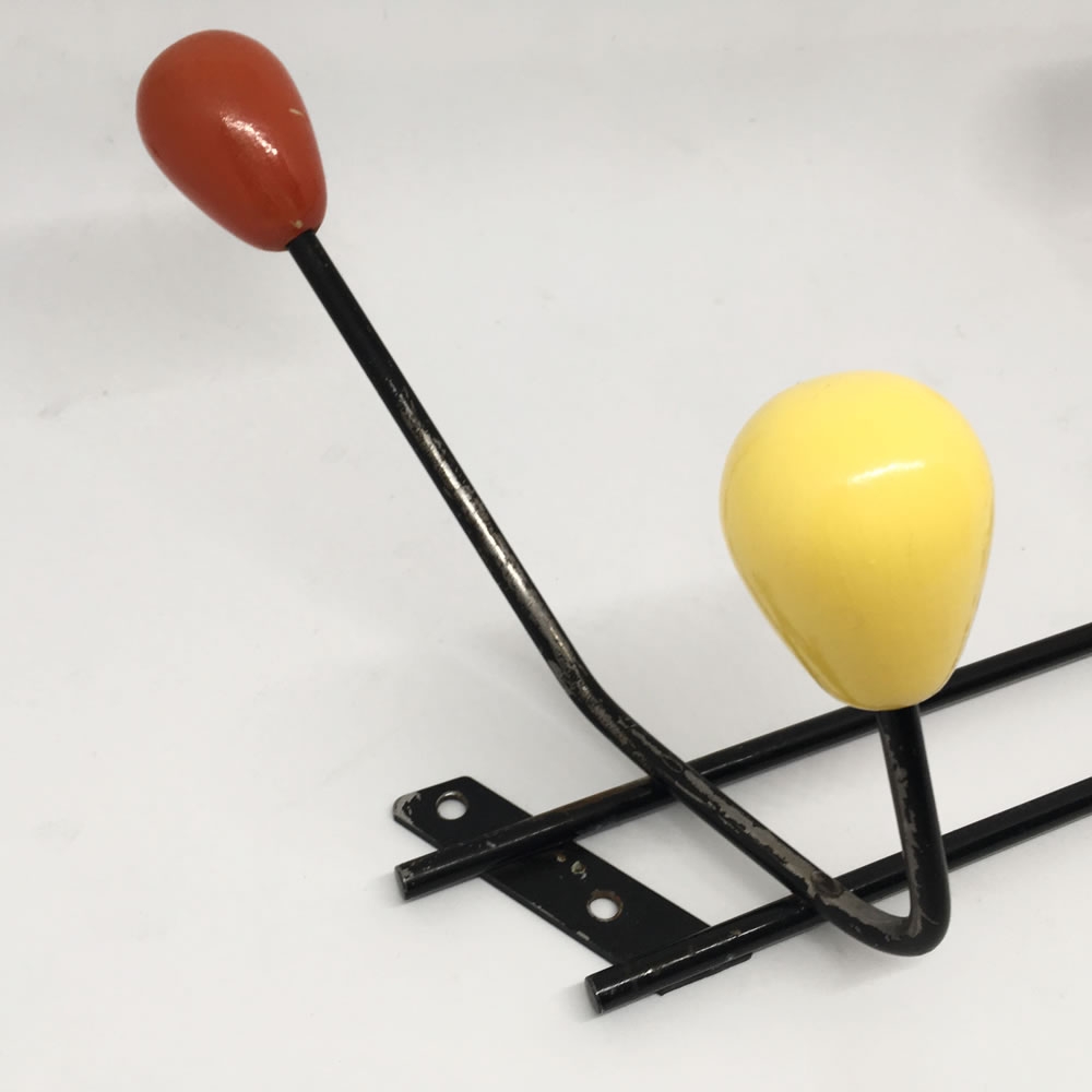 Patère 60s noir rouge jaune