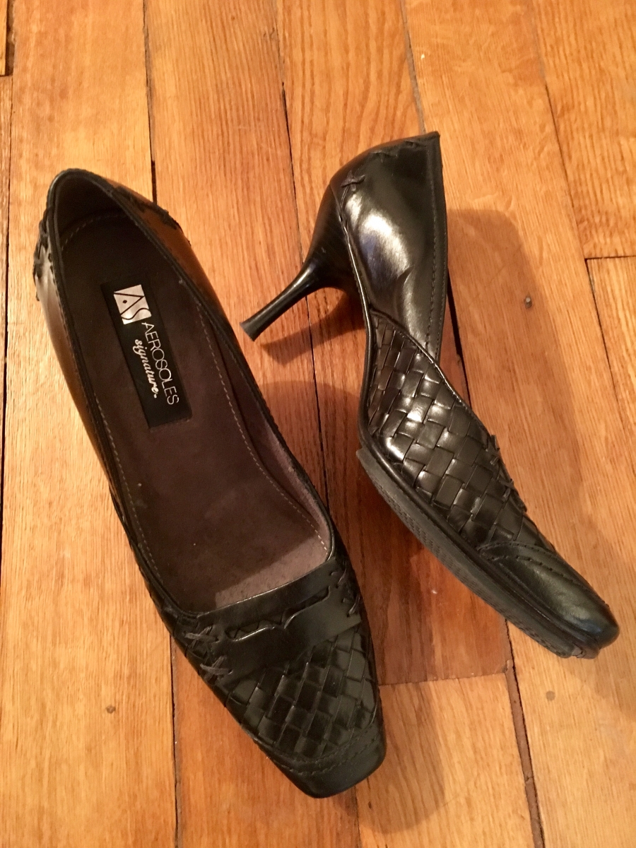 Escarpins en cuir tressé Aerosoles collection Signature. Talon 7,5 cm. Semelle exclusive en caoutchouc alvéolé antidérapant. Jamais portés.