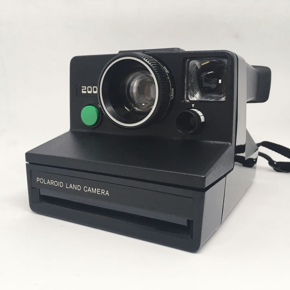 Dessiné par Henry Dreyfuss Associates et produit en 1976, le Polaroïd 2000 fut le premier de la série des compacts à film SX-70. L'an 2000 devenait un horizon assumé : plus de soufflet rétro, une typo space age et du plastique qui se montre, noir et lisse. Le bouton a un petit coté HAL 9000 mais en vert - plus amical sans doute.