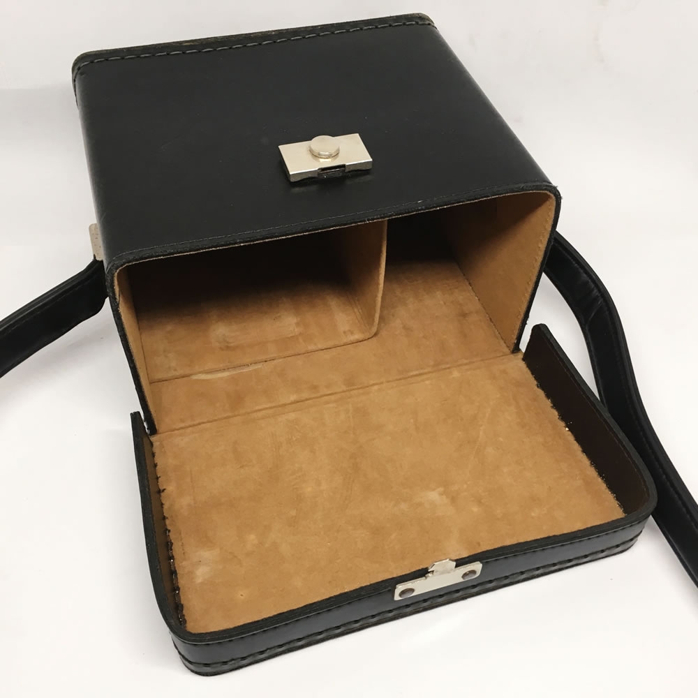 - sa sacoche de voyage d'origine Polaroïd en cuir, doublée velours