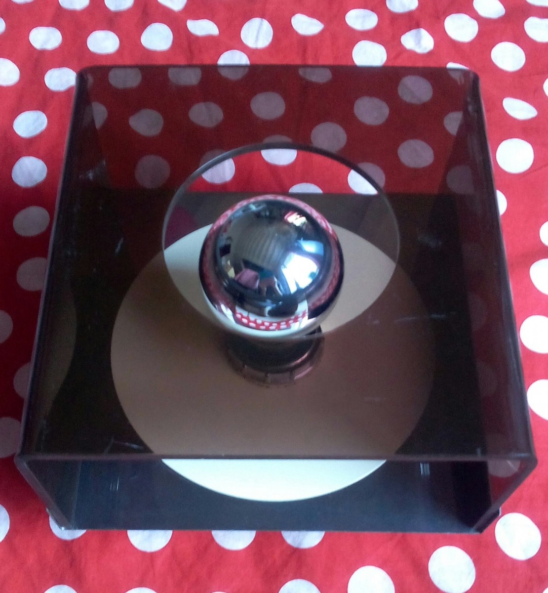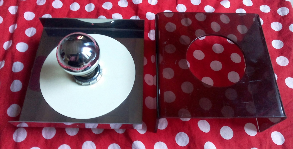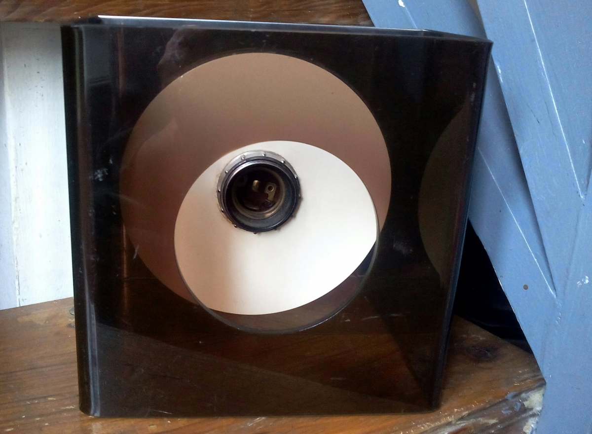 Matériau : plexiglas fumé marron et aluminium miroir.