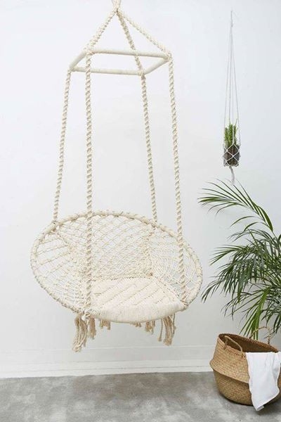 Jolie balancelle, idéale pour un salon cosy, une terrasse ou un balcon, en maille blanc-crème.