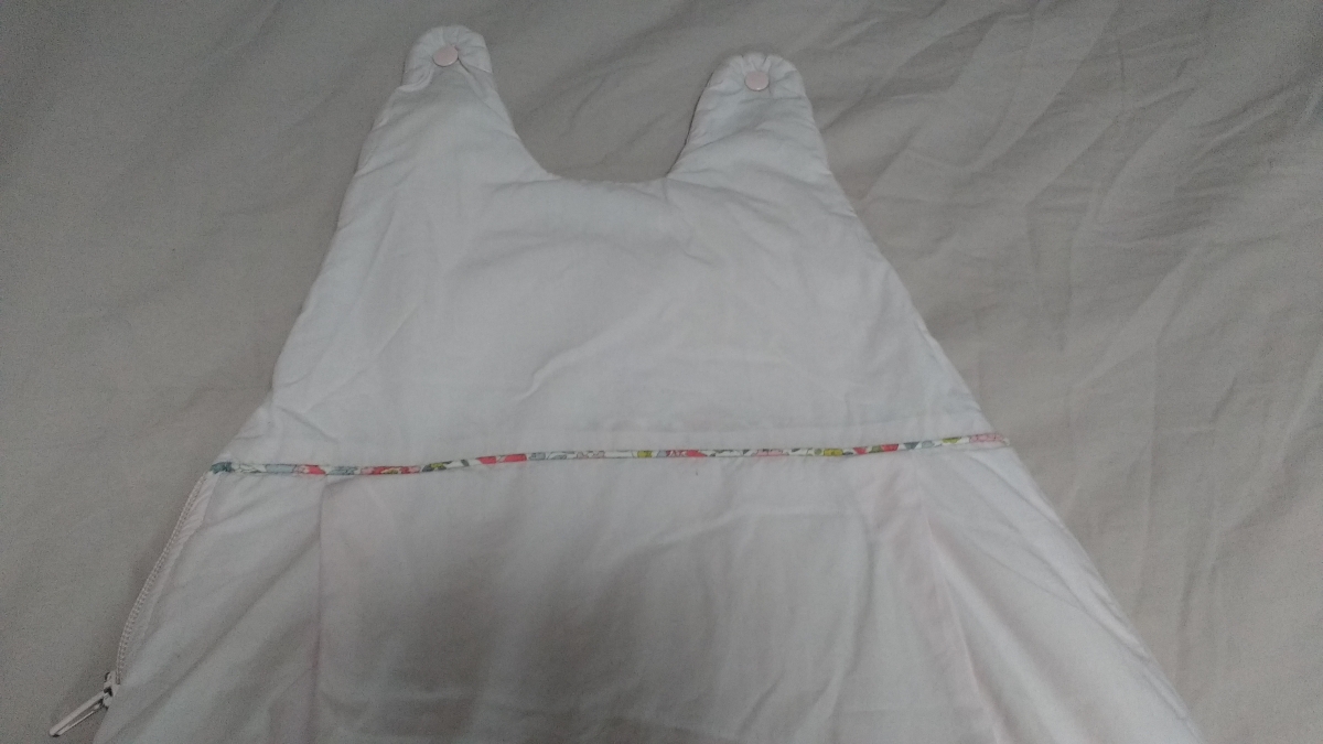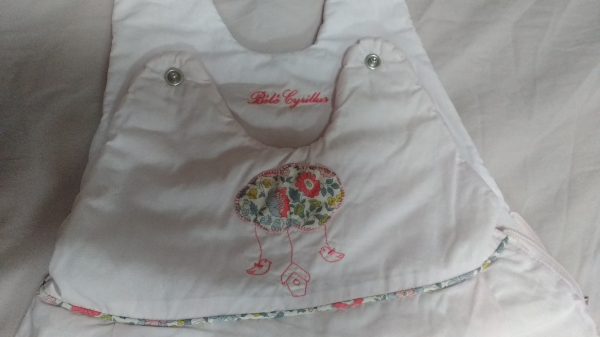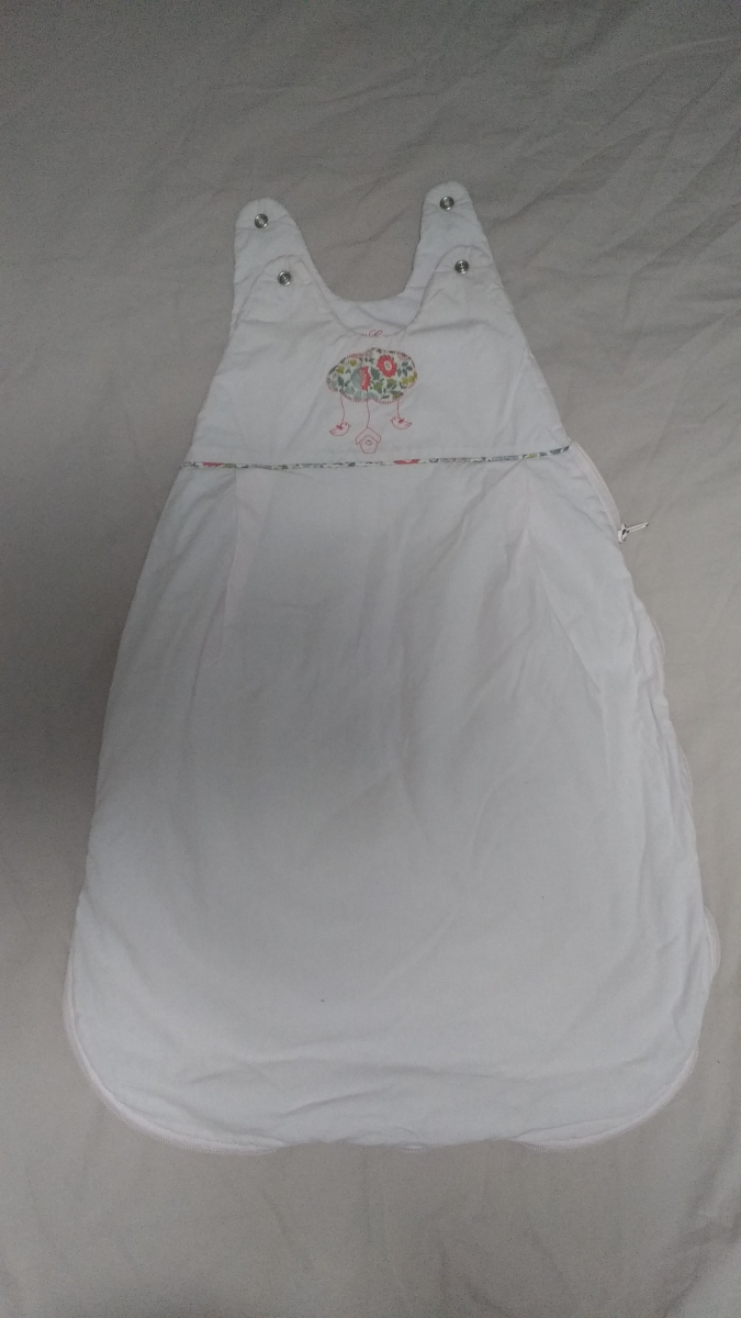 Gigoteuse 0-6 mois, rose claire avec motif liberty super mignon. Bien chaude pour un bébé, parfaite pour une petite fille à naître. J'ai eu plein de compliments à la maternité ;-)