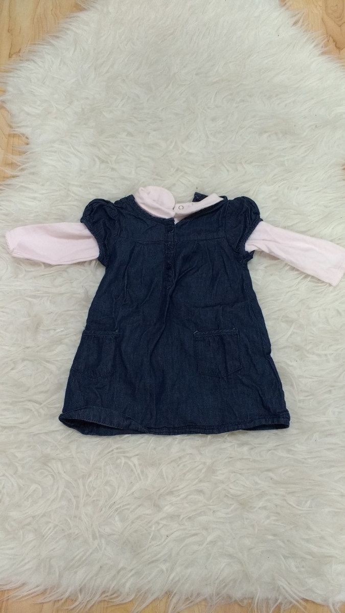 Robe effet jean + body rose clair Obaibi taille 3 mois