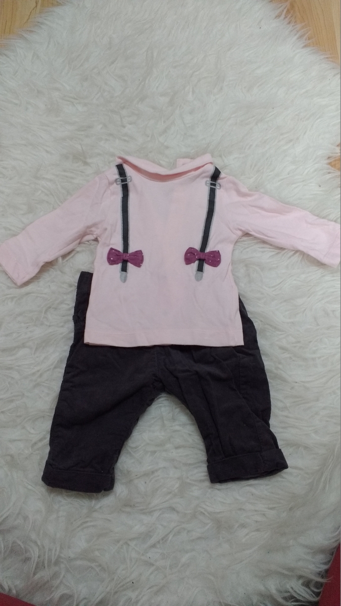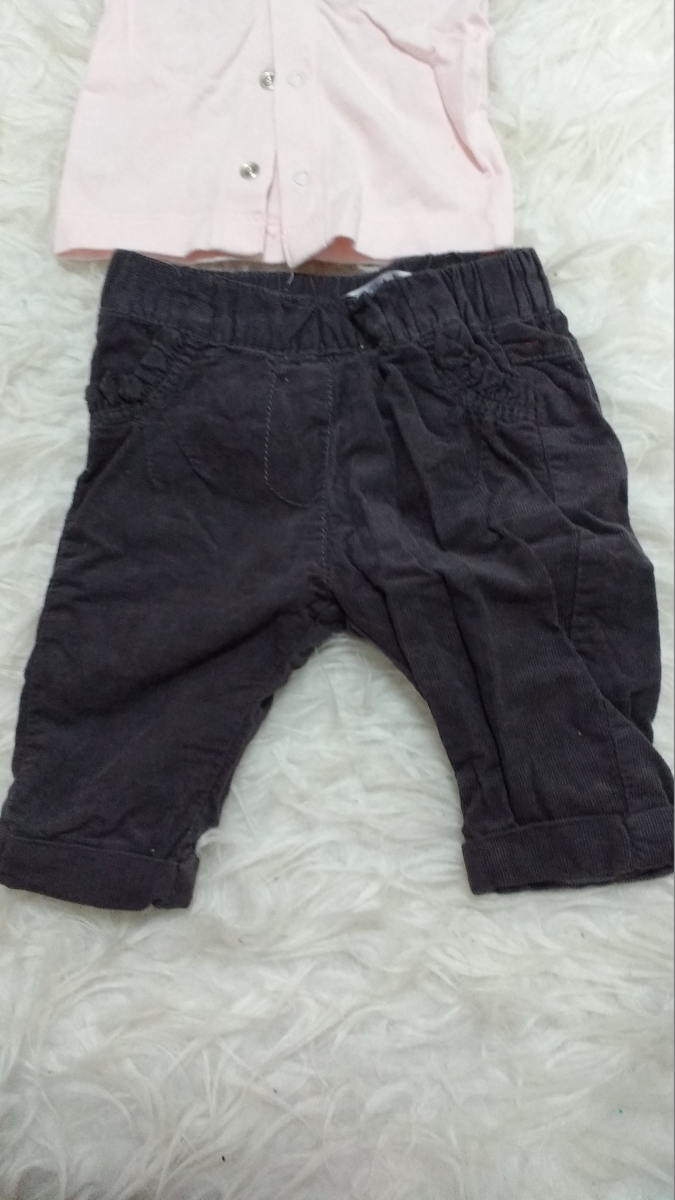 Ensemble pantalon velours marine doublé + T shirt rose clair. taille 3 mois