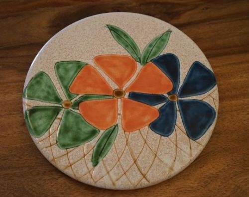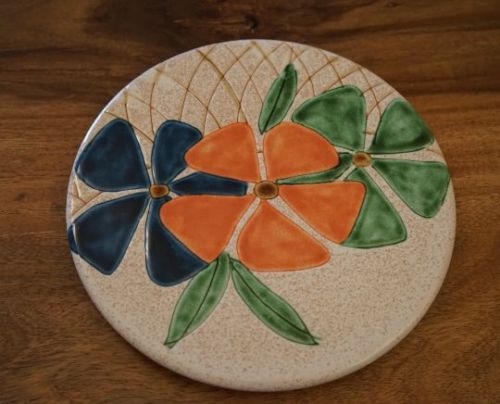 Dessous de plat en céramique VALLAURIS signé KAROLE, décor fleural, pour apporter une touche rétro à votre table !
