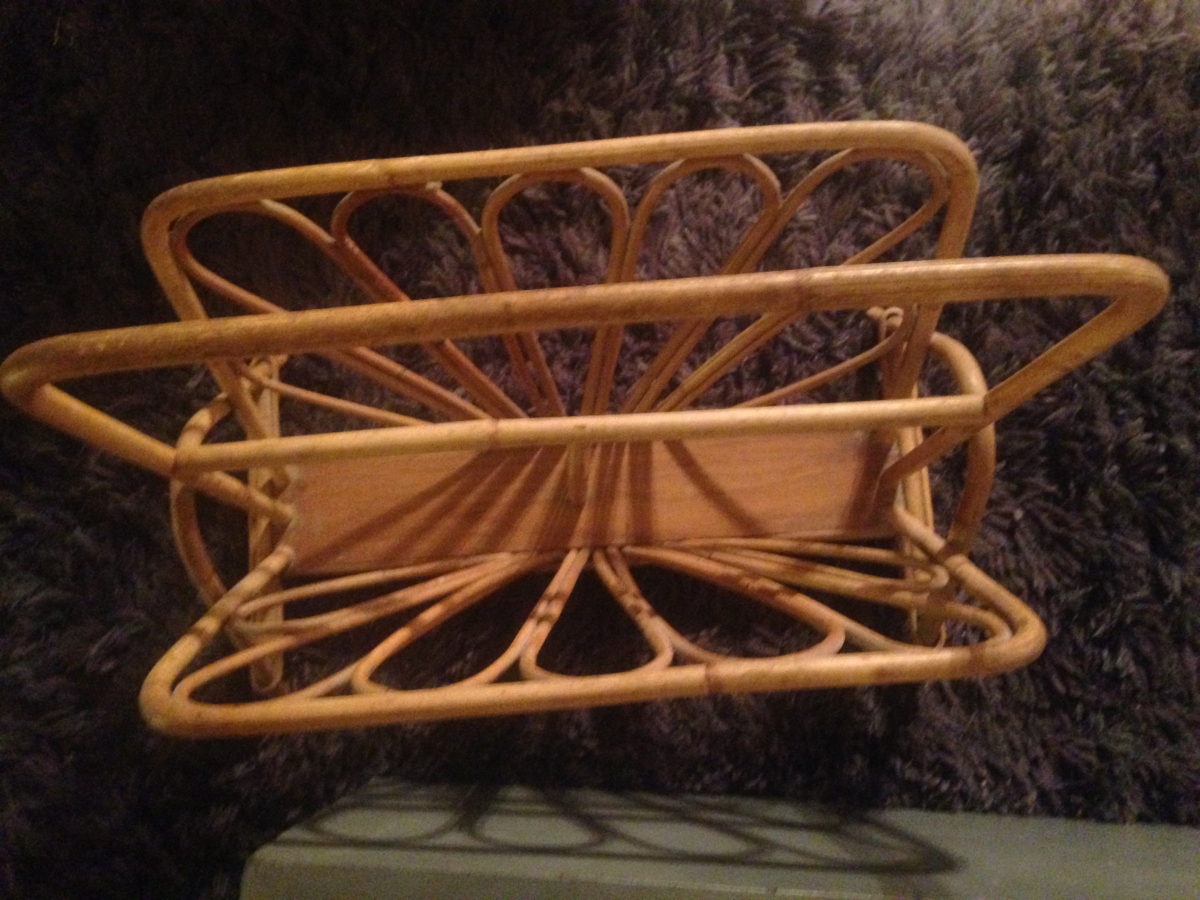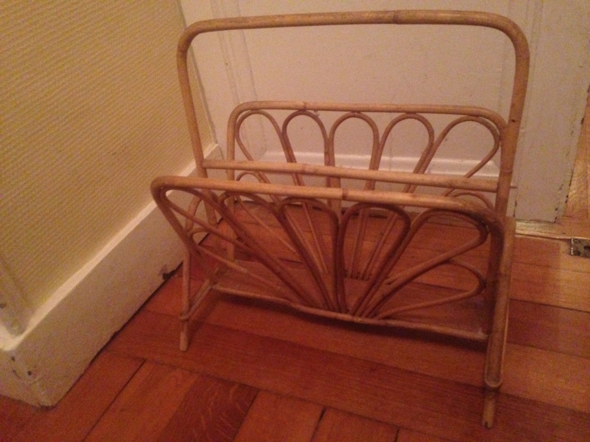 Grand porte revues en rotin années 60