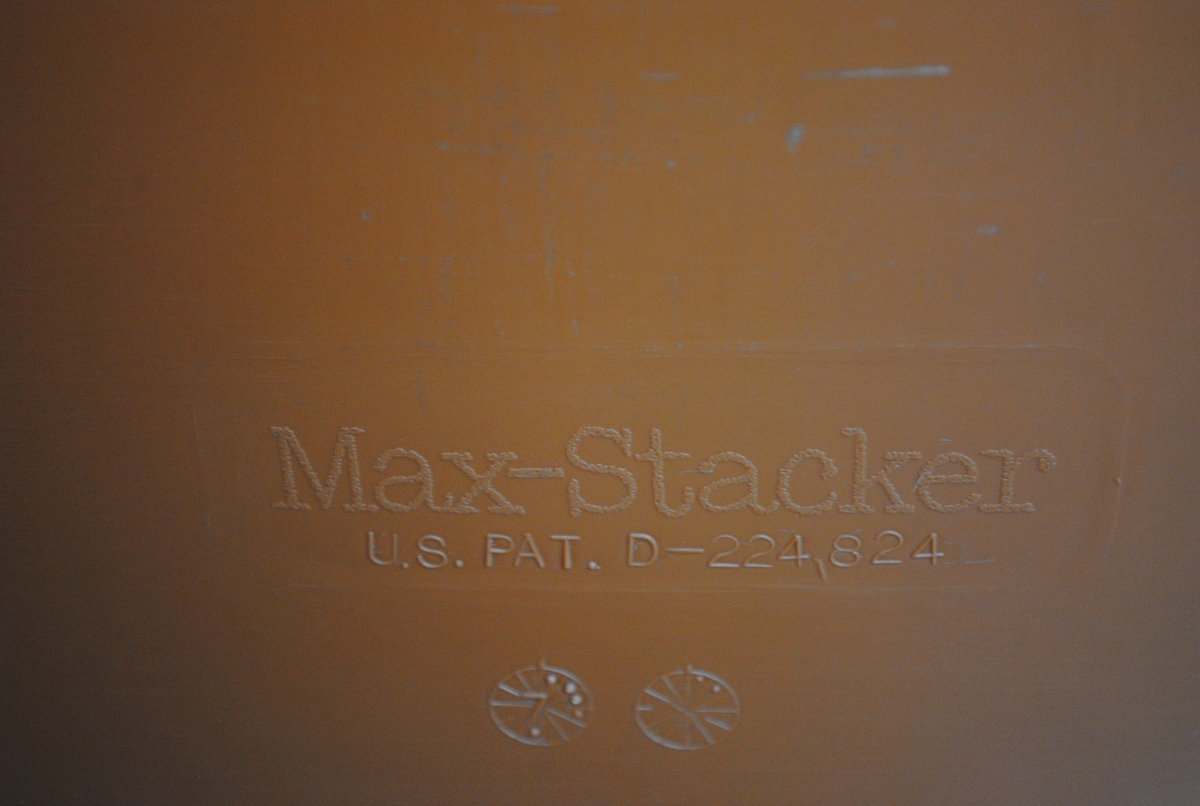 6 chaises signées Max-Stacker édition Steelcase des années 70. Assises et dossiers avec marques d'usage. Chrome en bon état général (légèrement piqué a certains endroits) . Couleur: orange. Empilable Hauteur 77 cm Largeur 51 cm Profondeur 51 cm Hauteur assise 43 cm Larg assise 45 cm Profondeur assise 45 cm. Possibilité de vendre a l'unité , nous contacter.