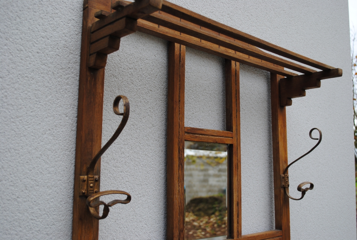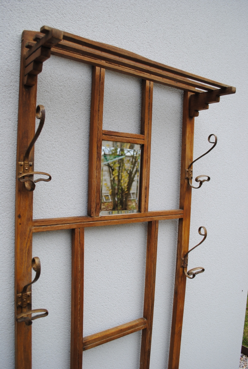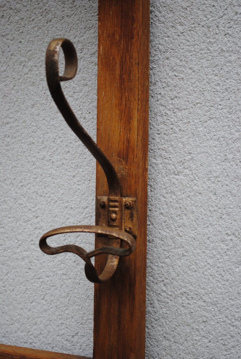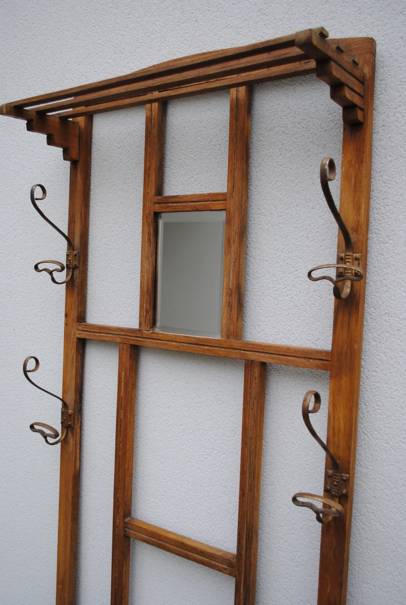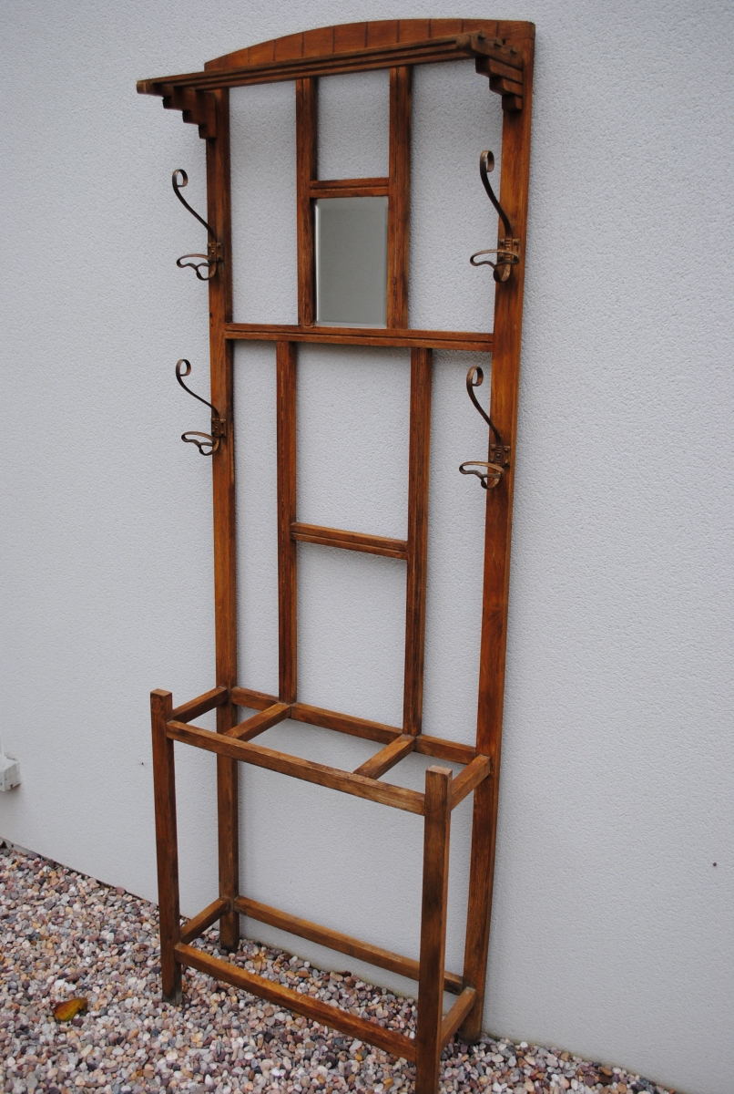 Vestiaire année 30 , 4 patères et porte parapluie . Petite glace biseautée d'origine .état d'usage .