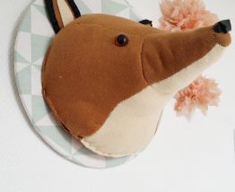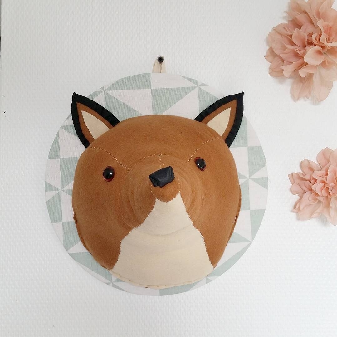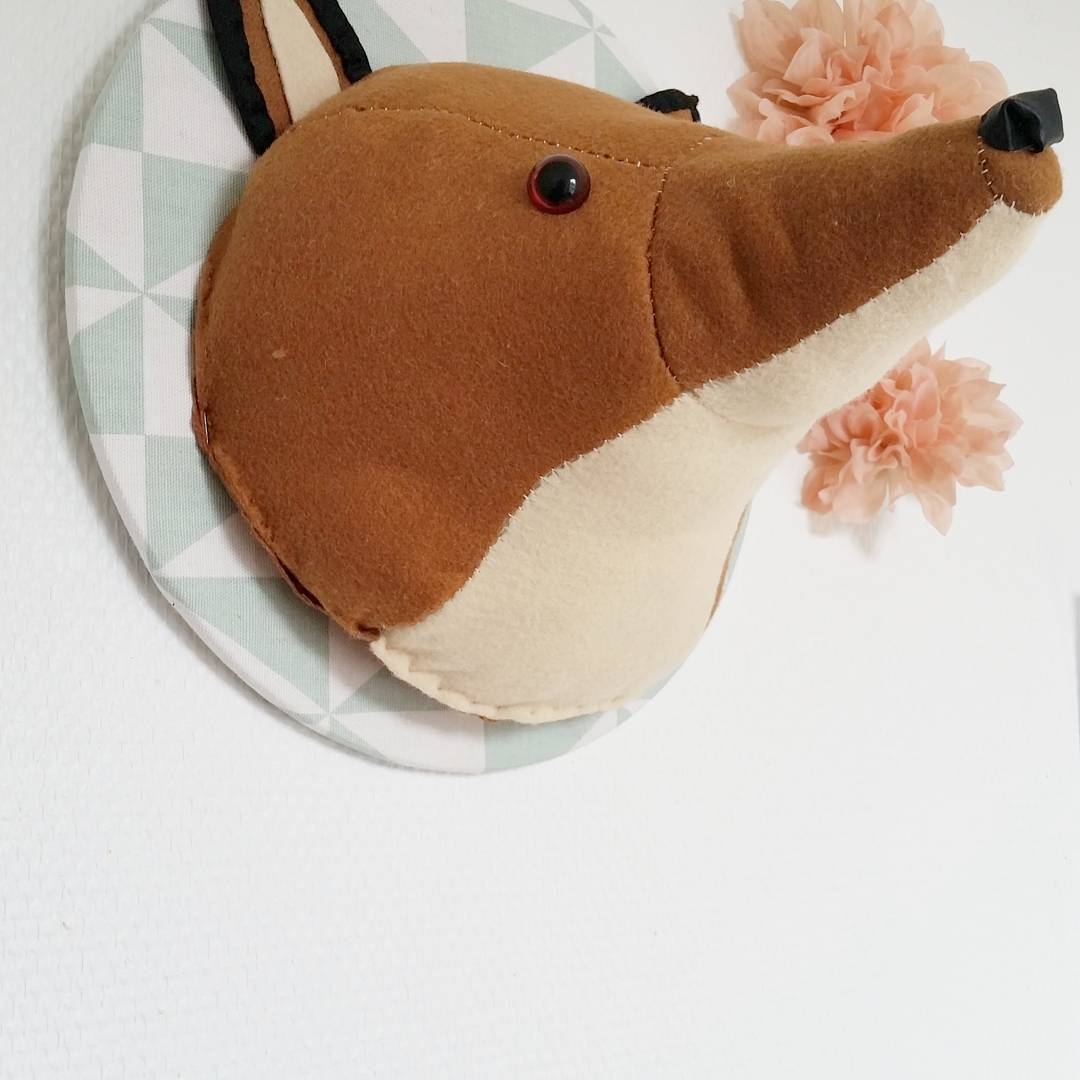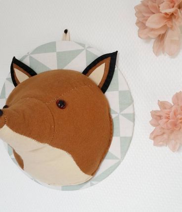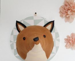 Faux trophée de renard entièrement fait main en feutrine avec accroché pour suspendre à un mur ! Parfait pour la décoration d'une chambre de bébé ou d'enfant !