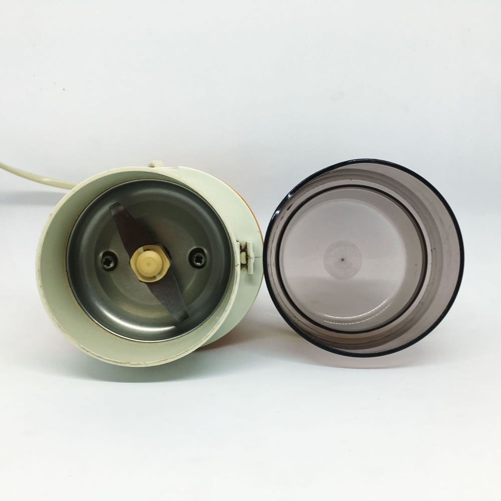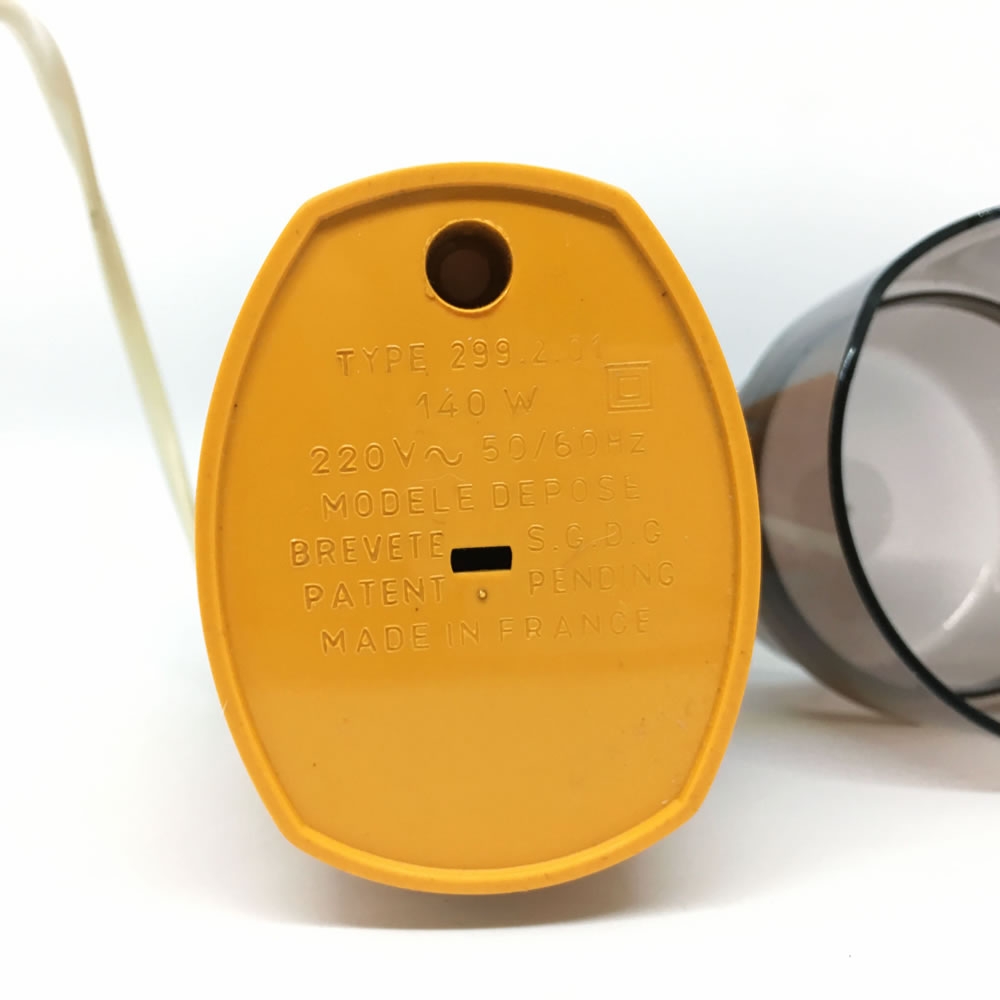 Bel exemple du design industriel français des années 70, le Moulinex MC3 était disponible en blanc ou orange. Simplissime d'utilisation, pas même un bouton : faire tourner le couvercle enclanche le moteur.