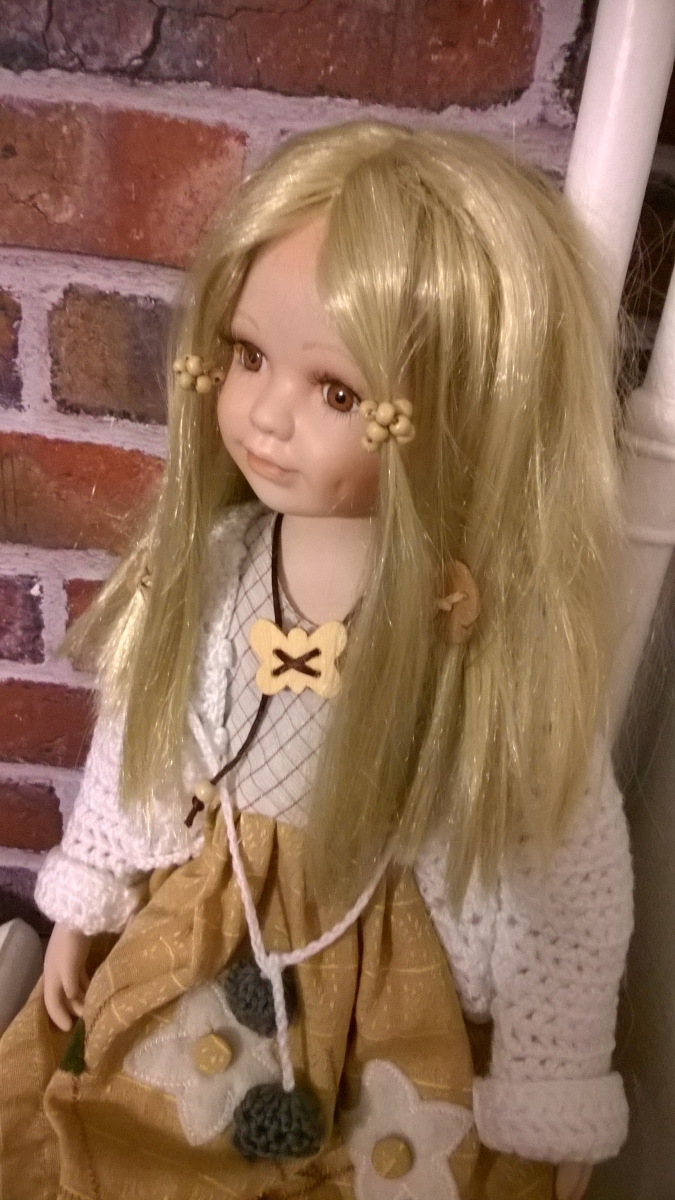 " Manon " du haut de ses 54 cm avec son air angélique, est magnifique, habillée et coiffée dans un style bohème, elle vous ravira jour après jour.