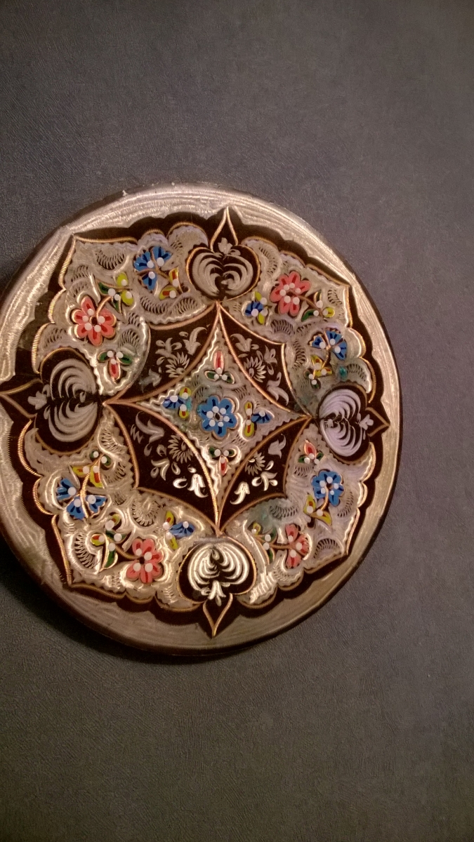 Petite assiette en cuivre avec fixation au dos pour accrocher au mur ou à utiliser comme vide poche.