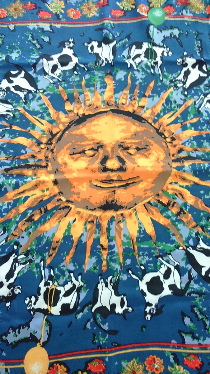 FoulardMotif soleil, vaches, fleurs52x52 cmBon état