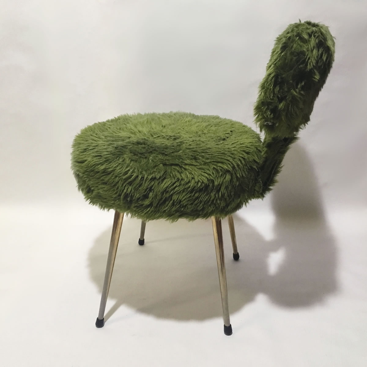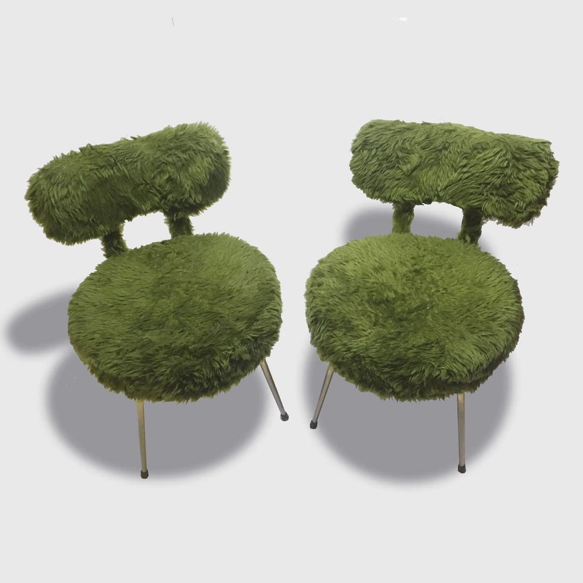 Toutes les moumoutes n'étaient pas pop - et ces deux chaises sont d'un beau vert anglais, pour une décadence en douceur. Chaise d'entrée, de salle de bains, de chambre d'enfant ? Leur assise basse (H 40cm) autorise bien des rôles.