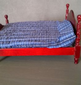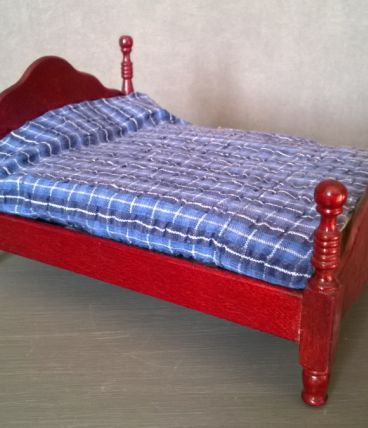 Petit lit en bois verni 2 personnes pour maisons de poupées / vitrines miniatures