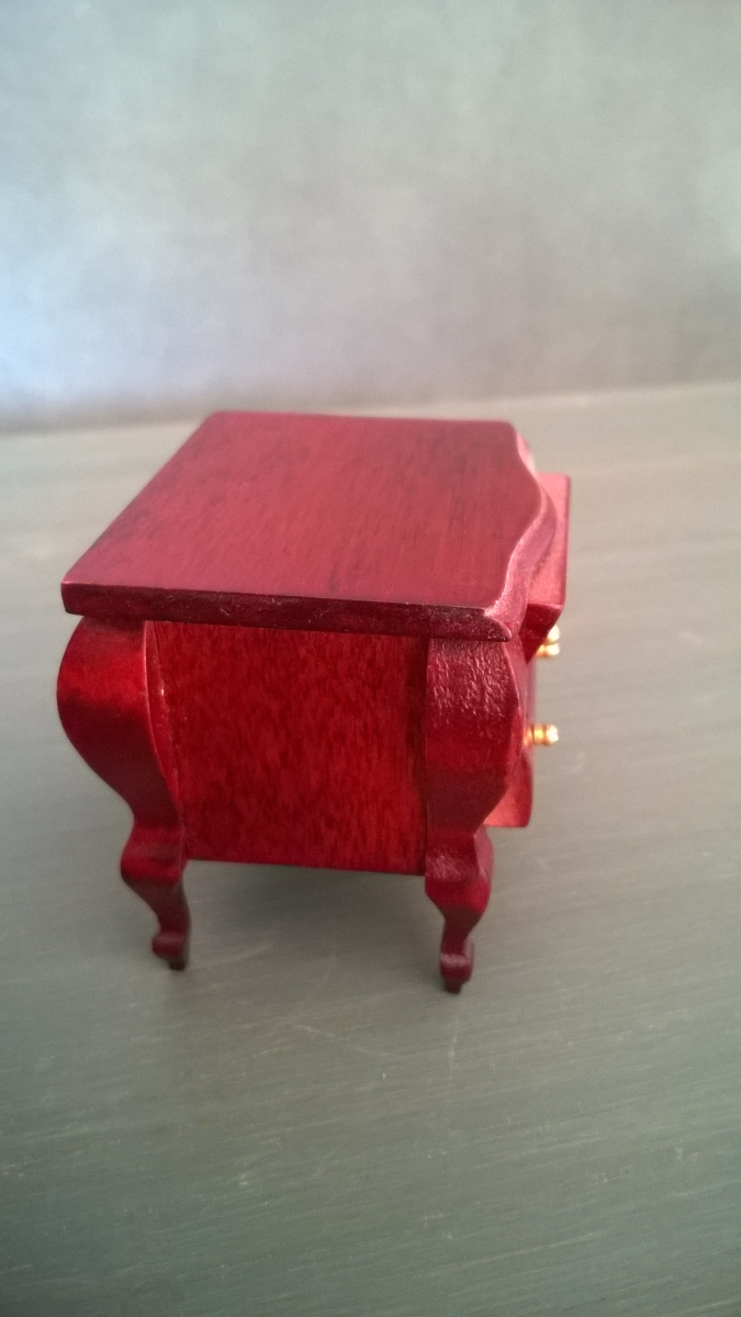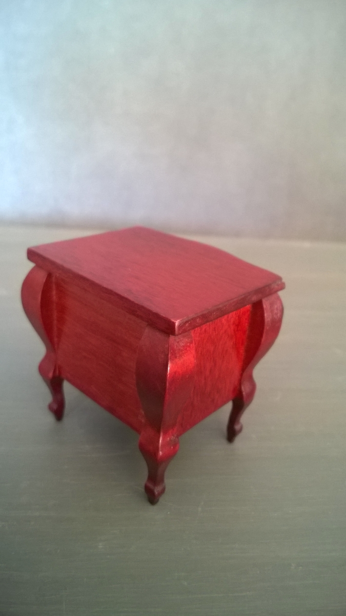 Petit chevet en bois verni pour vitrine miniature ou maison de poupée