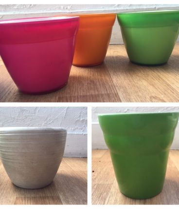 Lot de 3 pots en plastiques multicolores diamètre 12cm, hauteur 10cm : 3€