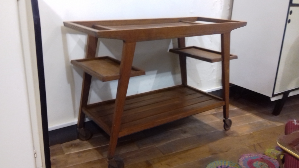 Très belle table à roulettes de type "desserte" des années 50. en très bon état de conservation. Objet vintage, décoratif, pratique et original. Encombrement L 97 H 70 P 41