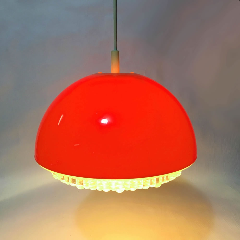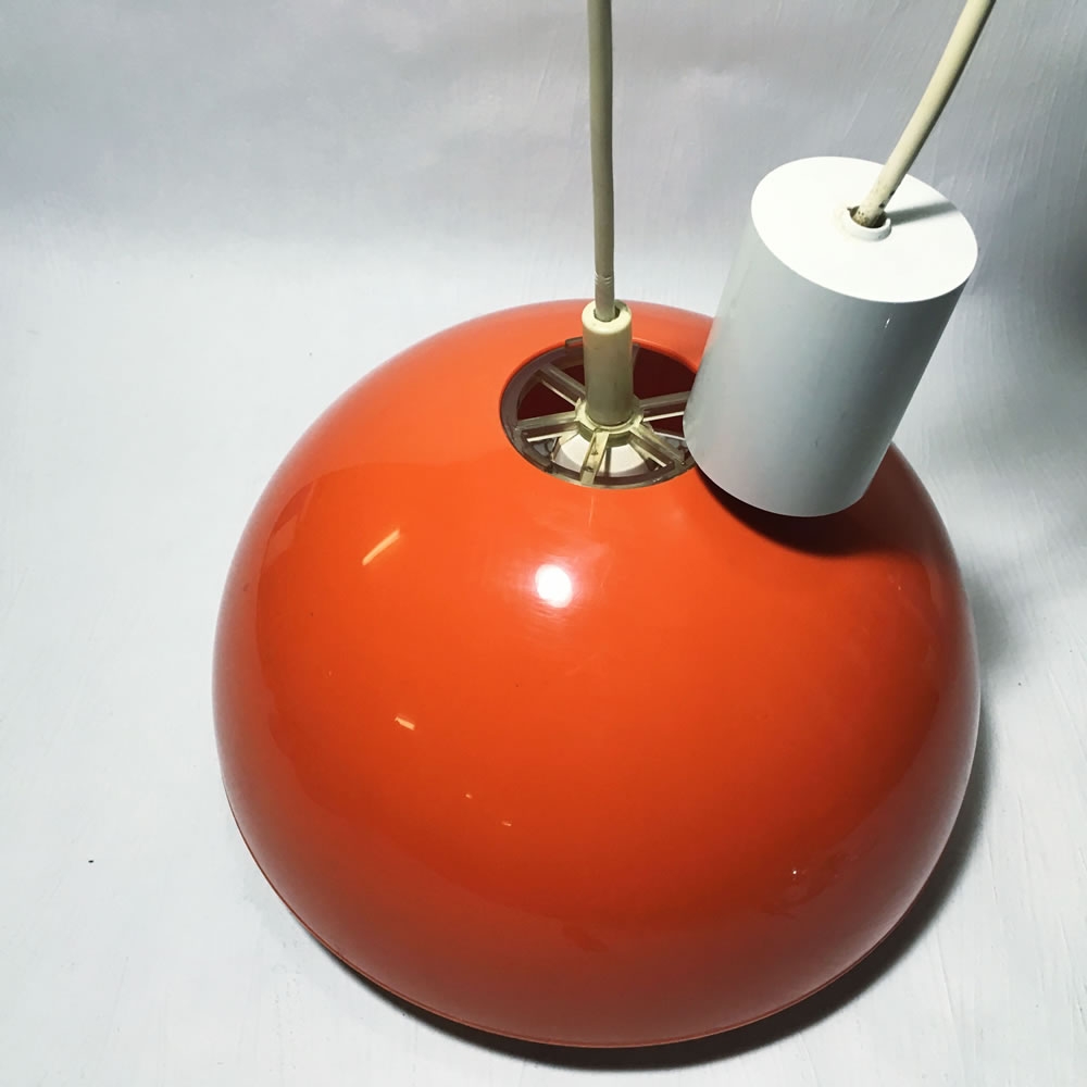 Le même modèle de suspension, en blanc, éclairait ma chambre d'enfant dès 1974. Je n'ai pas pu résister en voyant la version orange ! Il est très facile de changer le fil pour le rallonger si nécessaire, ainsi que de nettoyer l'intérieur du globe ou changer l'ampoule.