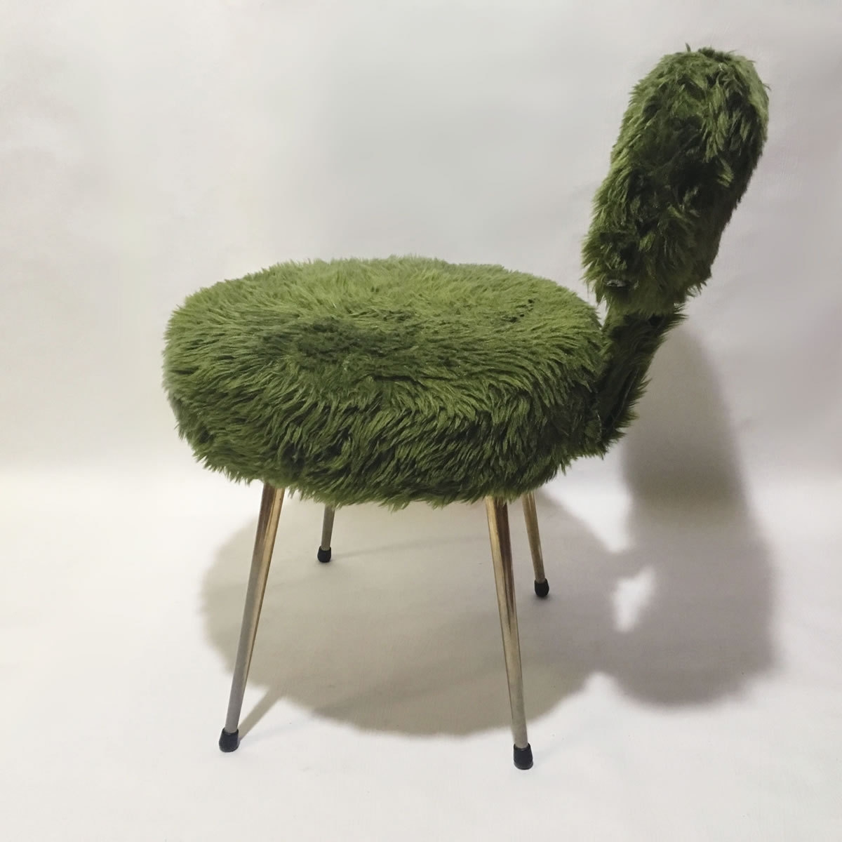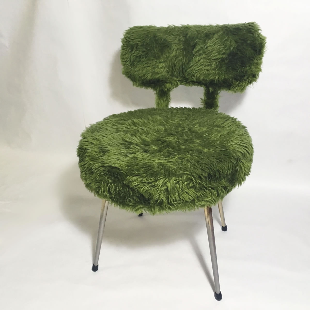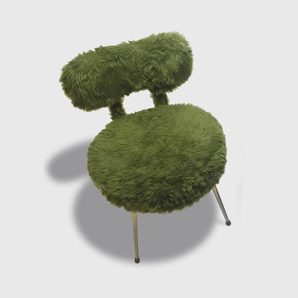Toutes les moumoutes n'étaient pas pop - et cette chaise est d'un beau vert anglais, pour une décadence en douceur. Chaise d'entrée, de salle de bains, de chambre d'enfant ? Son assise basse (H 40cm) autorise bien des rôles.