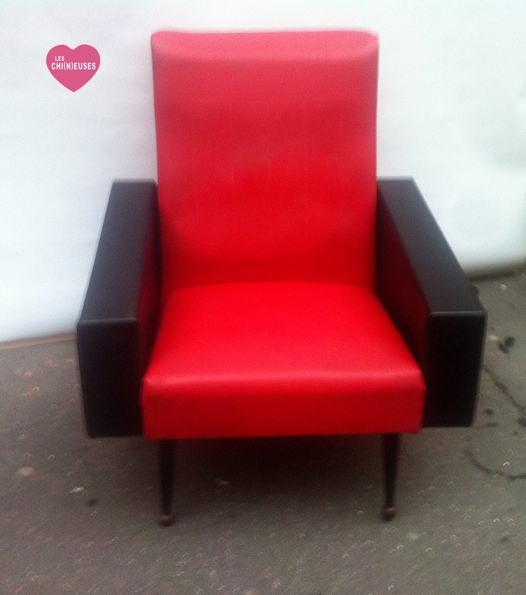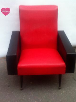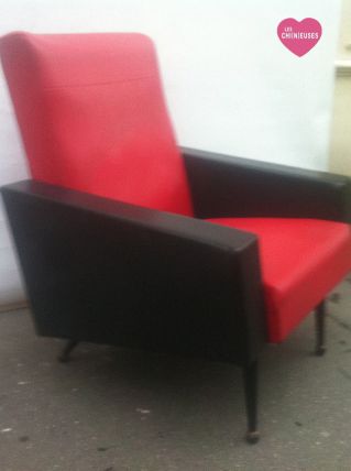 Fauteuil skaï rouge et noir 1960