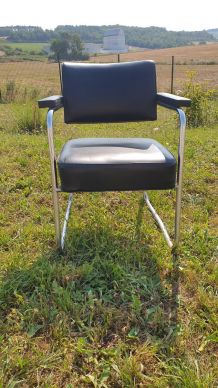 Pieds compas métal noirs - revêtement simili cuir noir et rouge. Un tout petit trou sur le dossier.