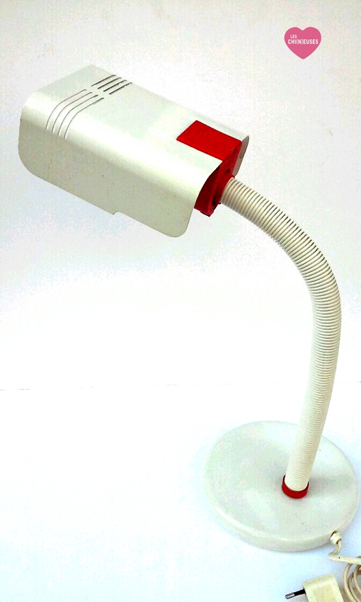 Belle lampe de bureau en métal laqué blanc et rouge, vintage années 70. La tige est flexible et recouverte de plastique blanc. Bon état. Designée par Targetti Sankay, fabriquée en Italie.