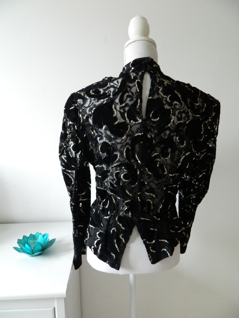 Blouse esprit baroque dentelle, velours et strass vintage 80's