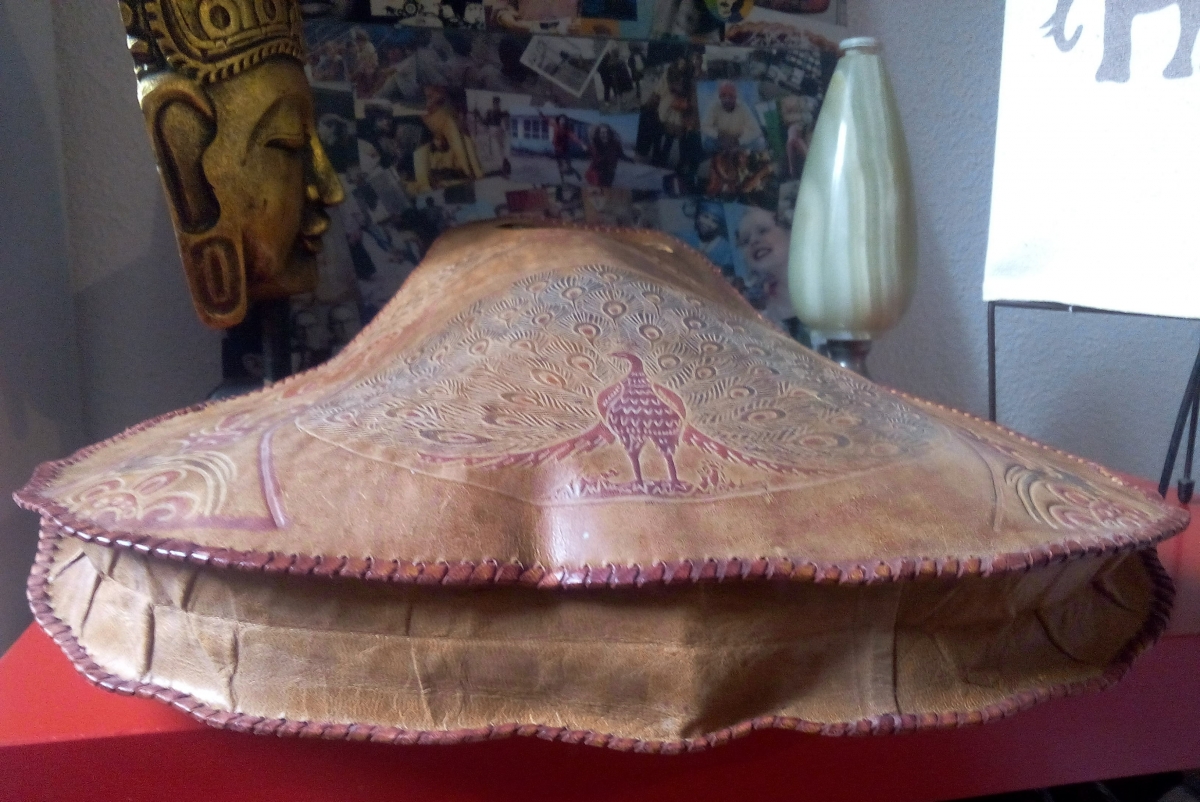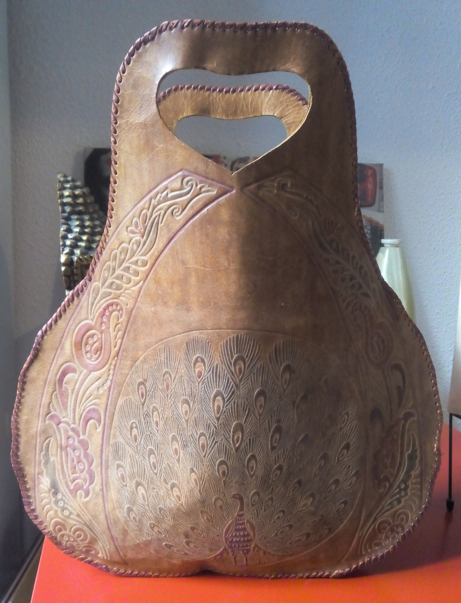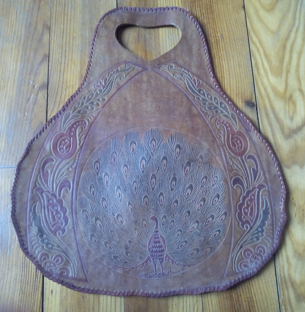 Joli sac en cuir artisanal décor paon.