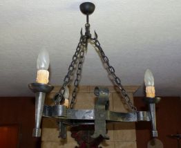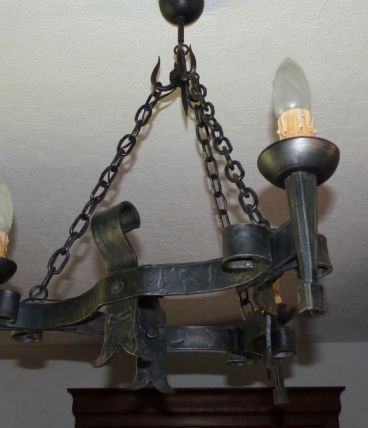 Luste rustique métal et bois 5 ampoules