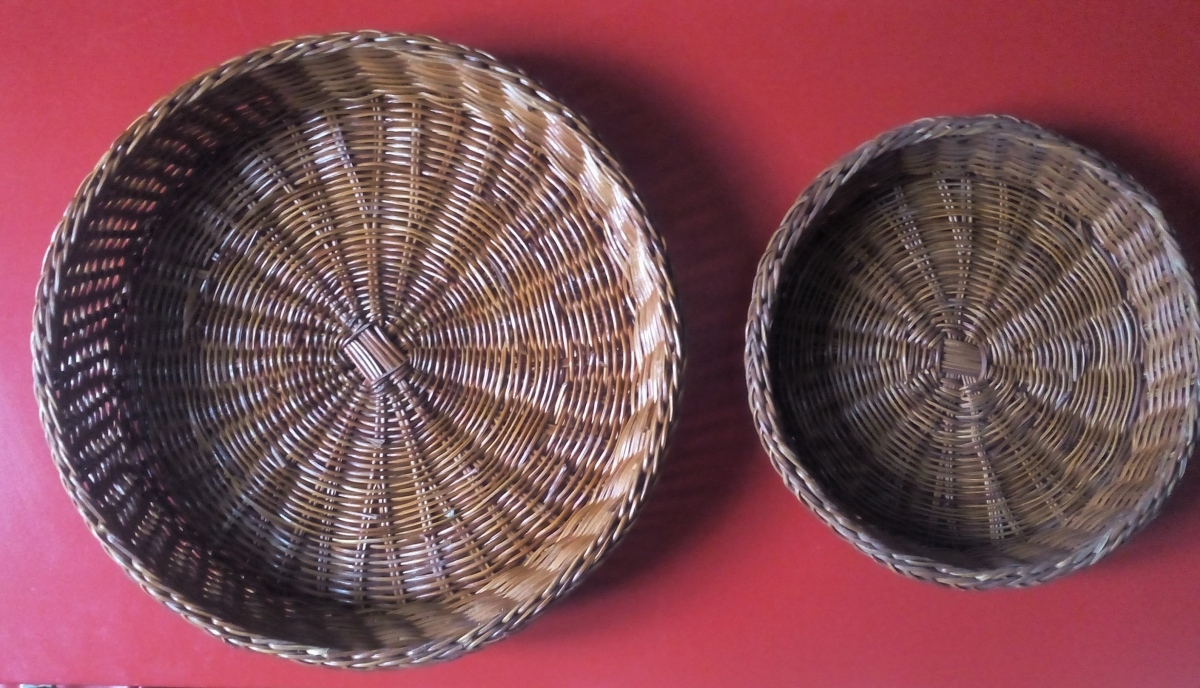 Deux jolis moules à tarte dans leurs panières en osier - vintage