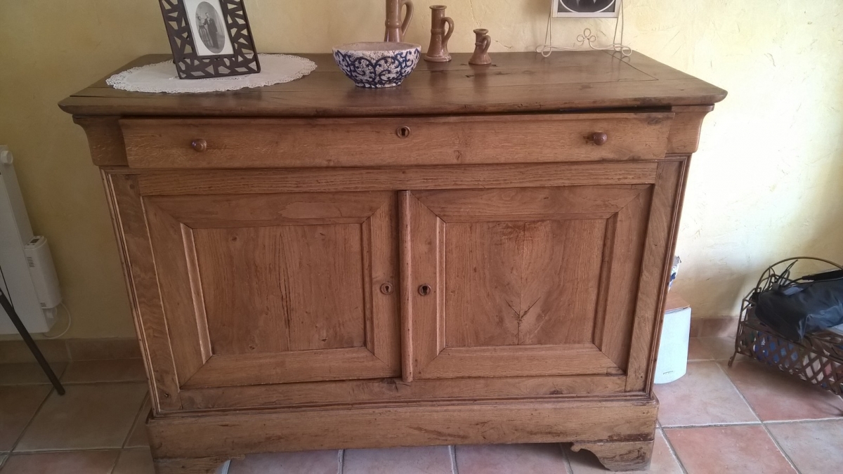 Vends buffet Louis Philippe bon état, 1 rayon intérieur et un grand tiroir extérieur. L 1.35 m