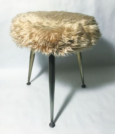 Tabouret tripode moumoute sable 70s