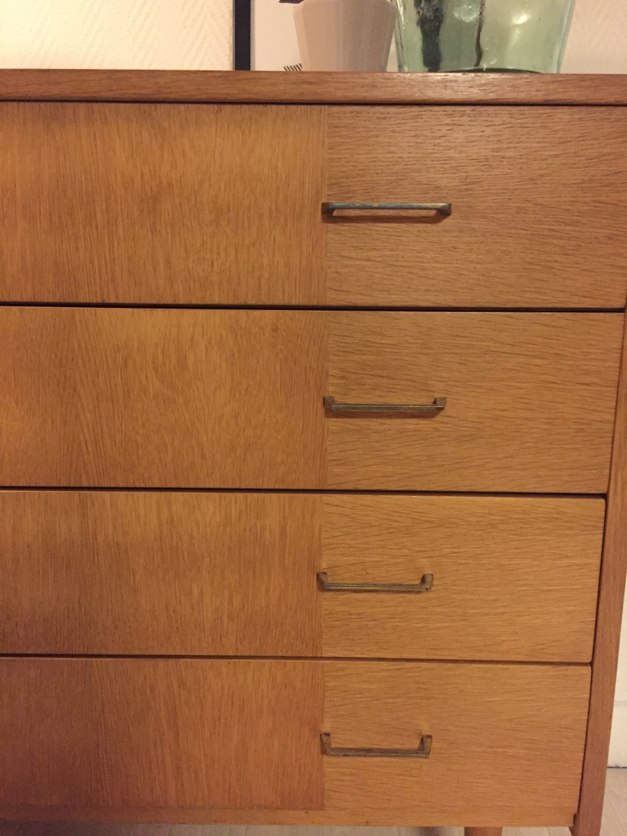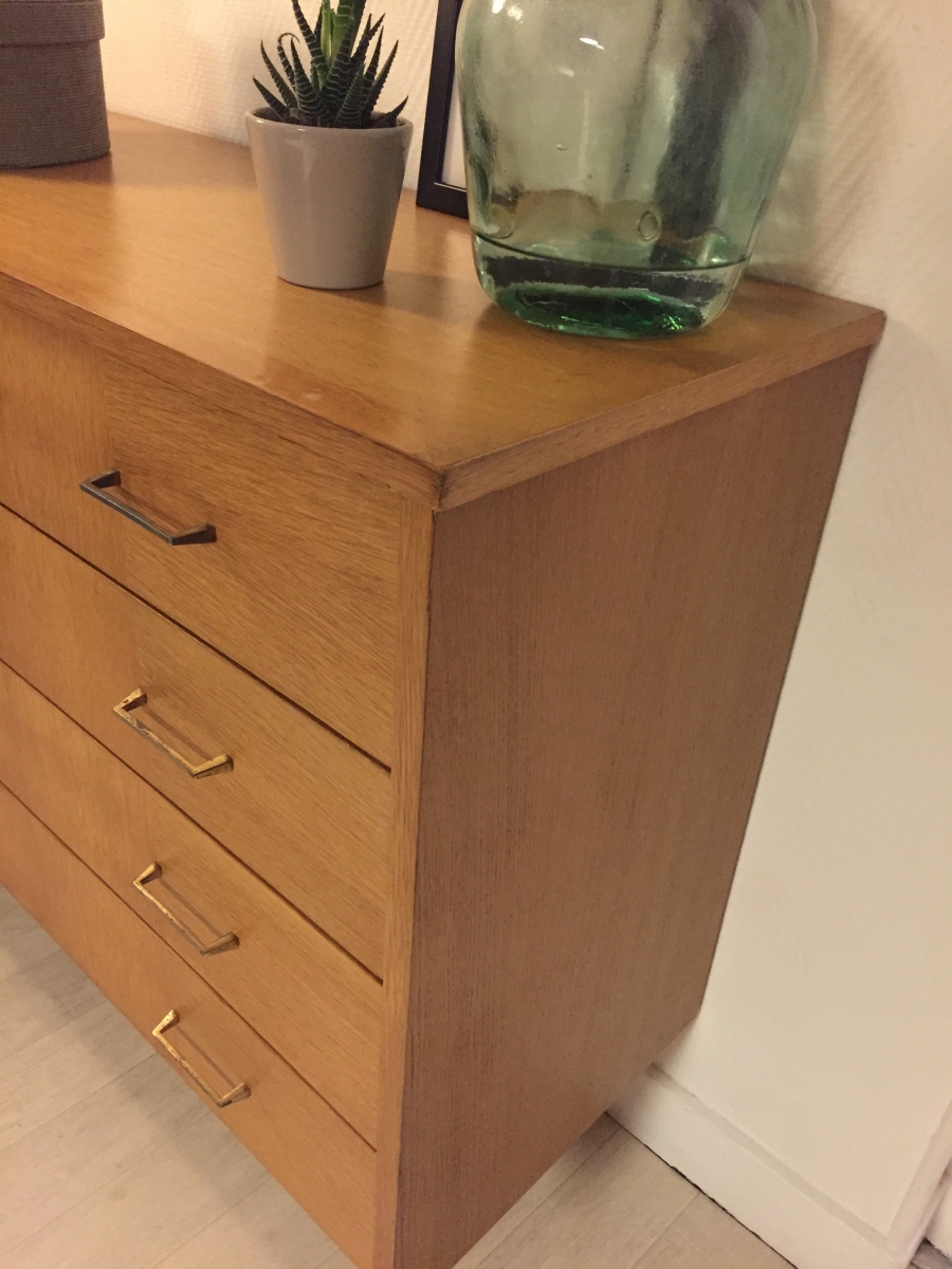 Magnifique commode vintage des années 70 en très bon état de légères traces du temps, les tiroirs coulissent bien Livraison possible Paris île de France.