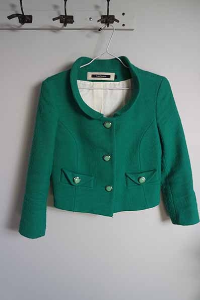 Cette veste couture est en laine à l'extérieur et possède une doublure en coton, elle est très pratique en hivers ou demi-saison.
