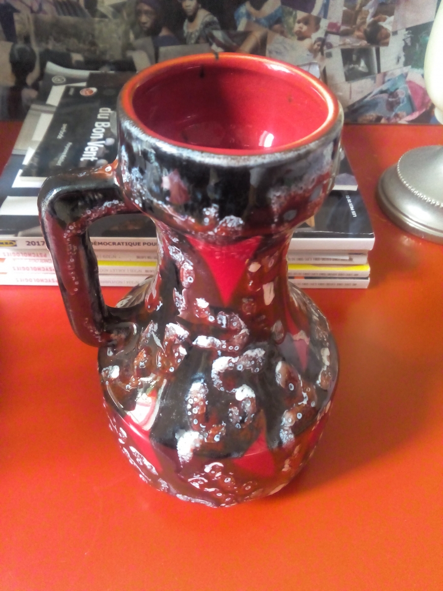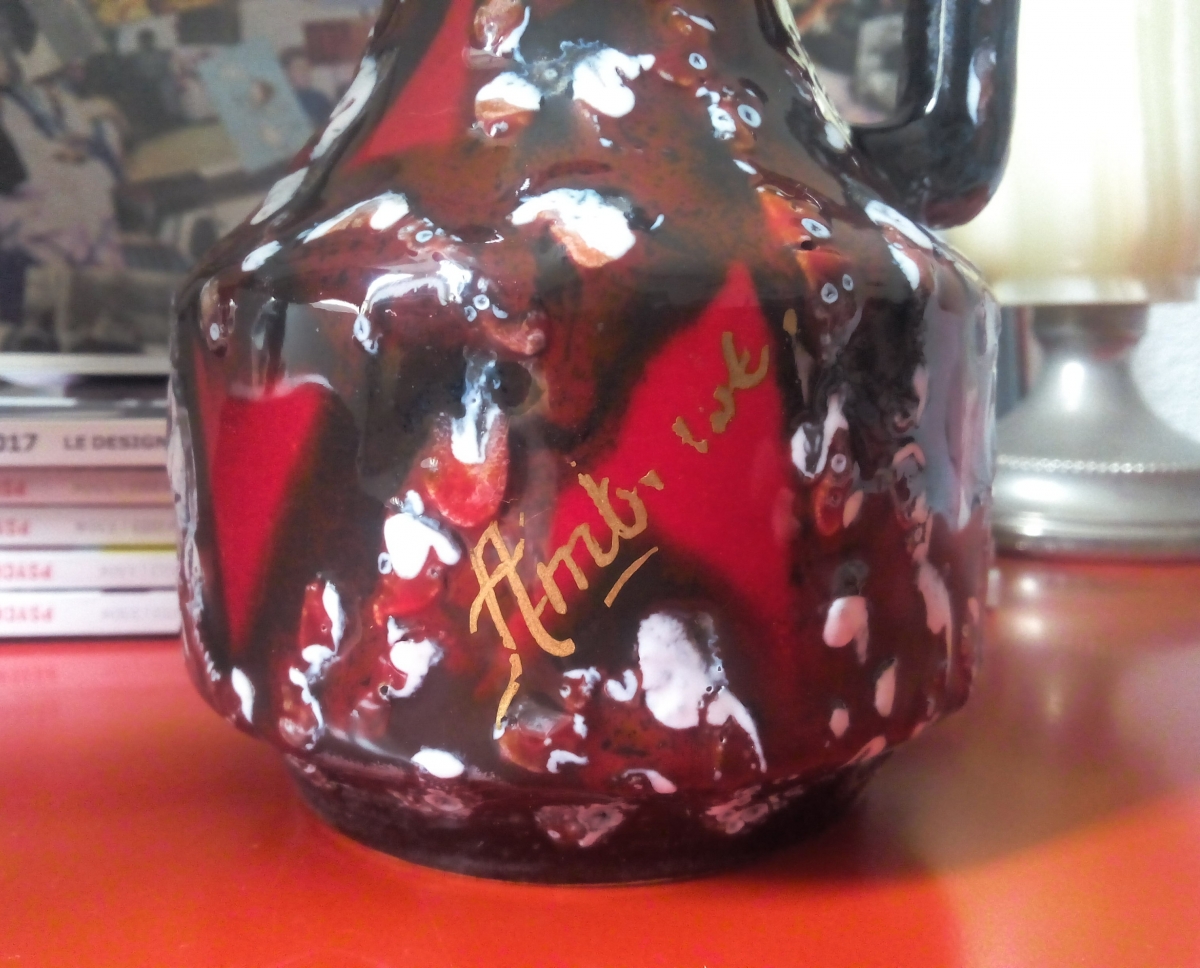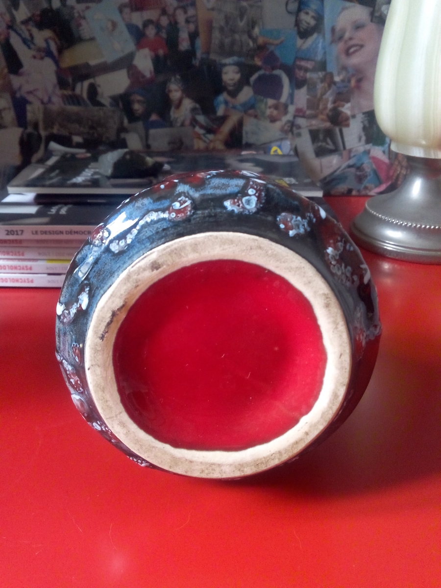 Très jolie céramique émaillée décorée avec de jolies couleurs vives (noir, blanc et rouge).