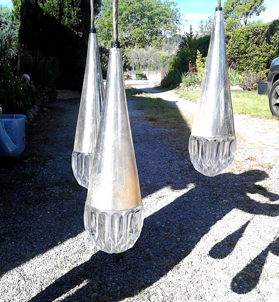 luminaire, année 60 , en forme de gouttes d'eau, verre travaillé et métal...parfait état