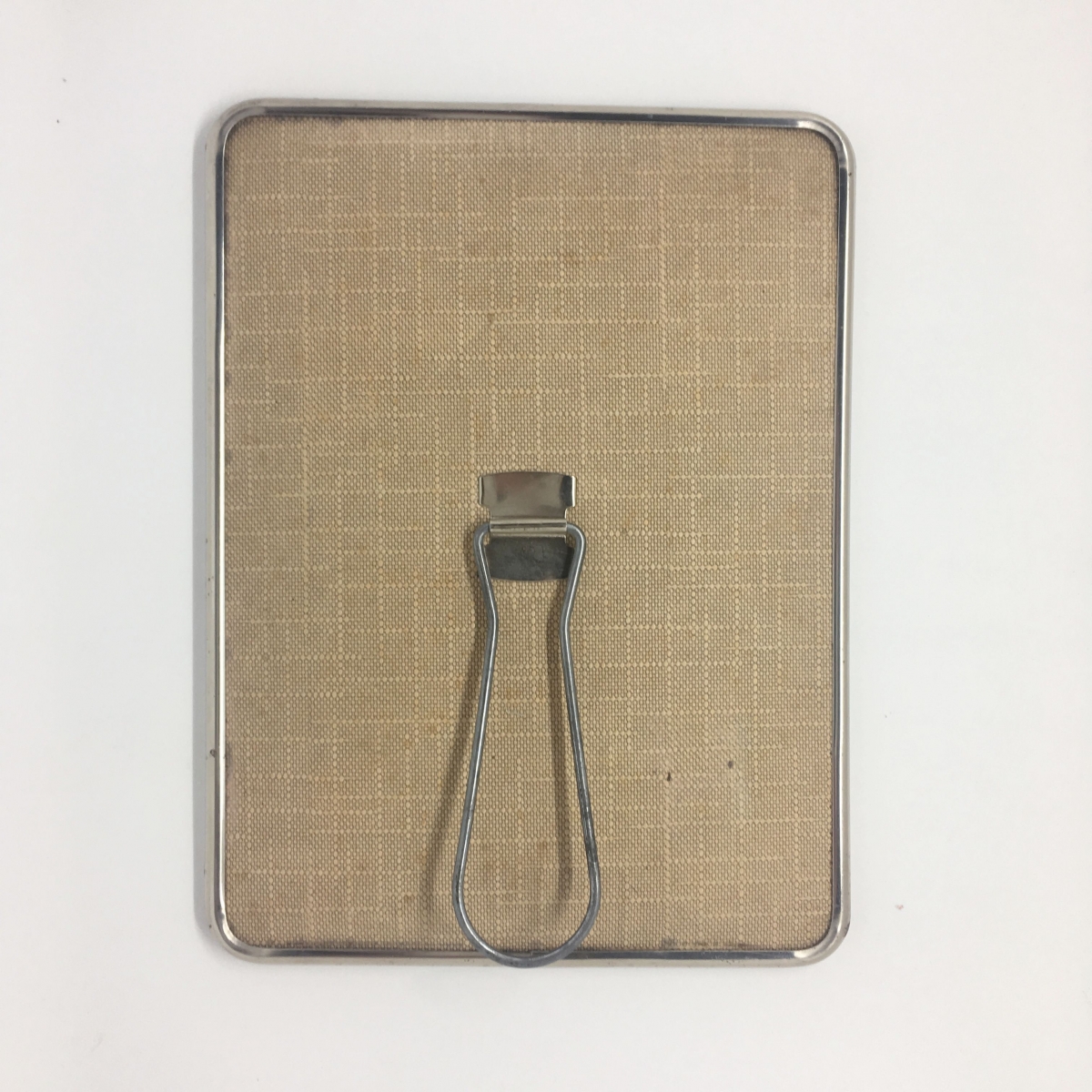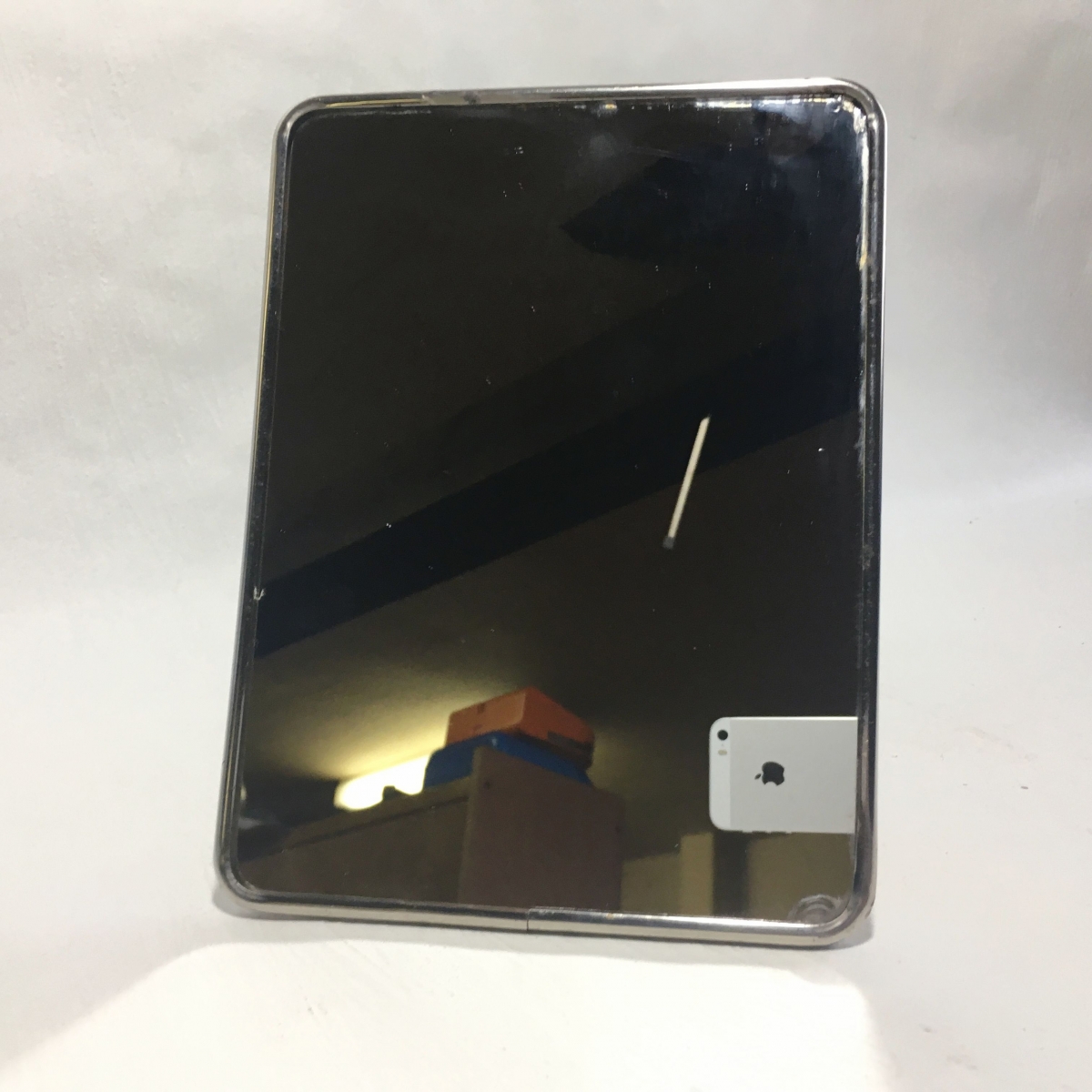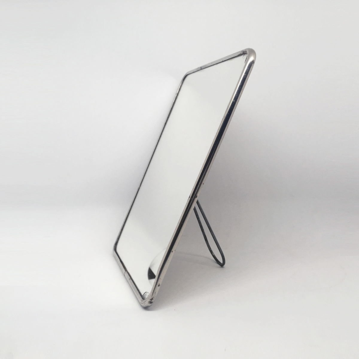 Miroir de barbier simple panneau, dos en carton bouilli. Peut être posé ou suspendu.