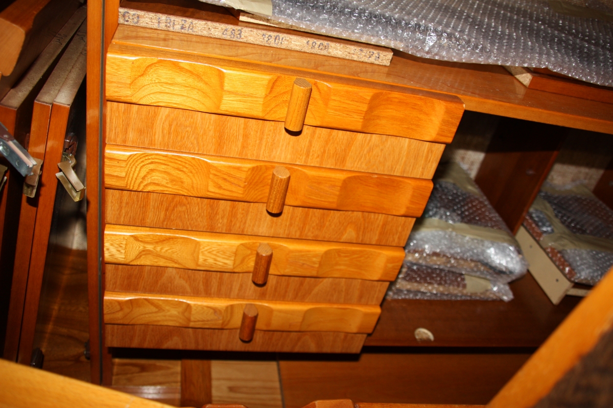 Malgré son look "modernisme " on perçoit l'influence du design scandinave, travail des chants en bois et celui des poignées des