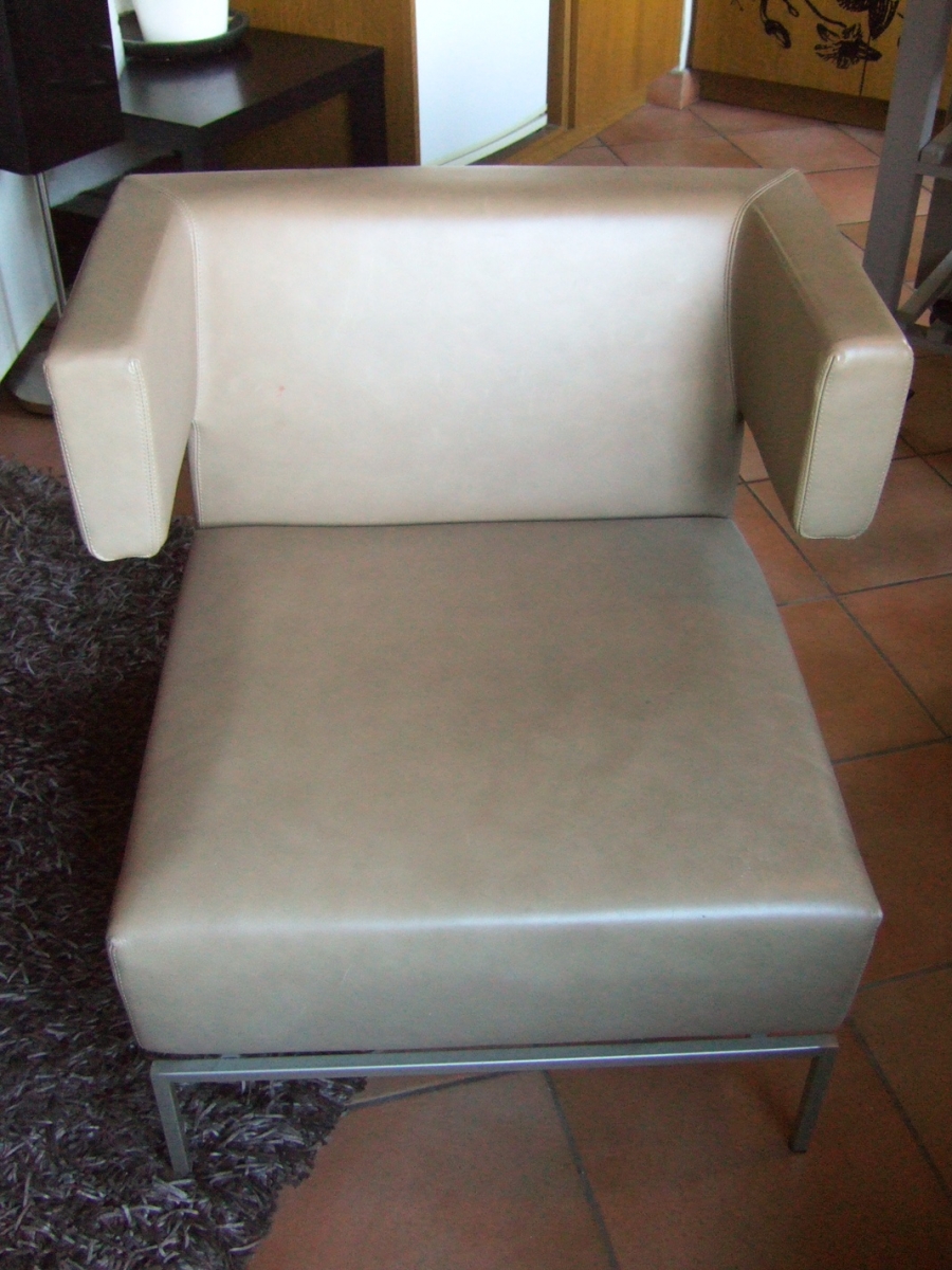 Fauteuil design en cuir doux et aux lignes dépurées.