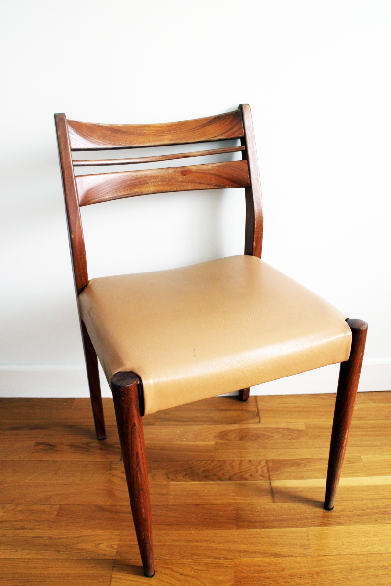 Superbe chaise scandinave datant des années 60. Structure à pieds fuseaux en Teck.