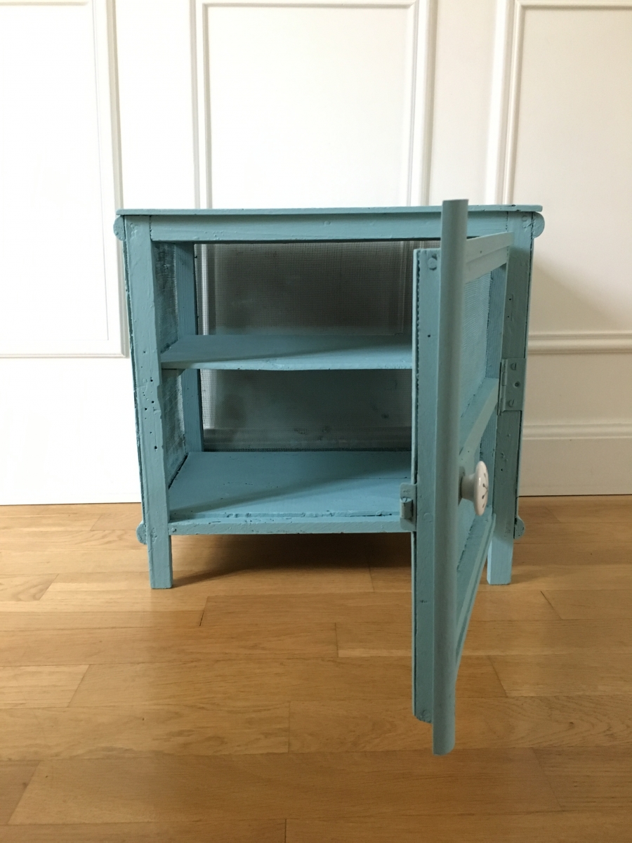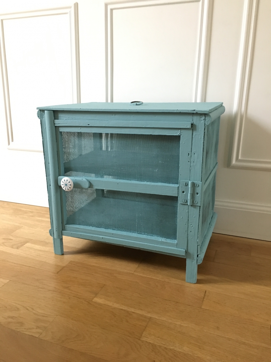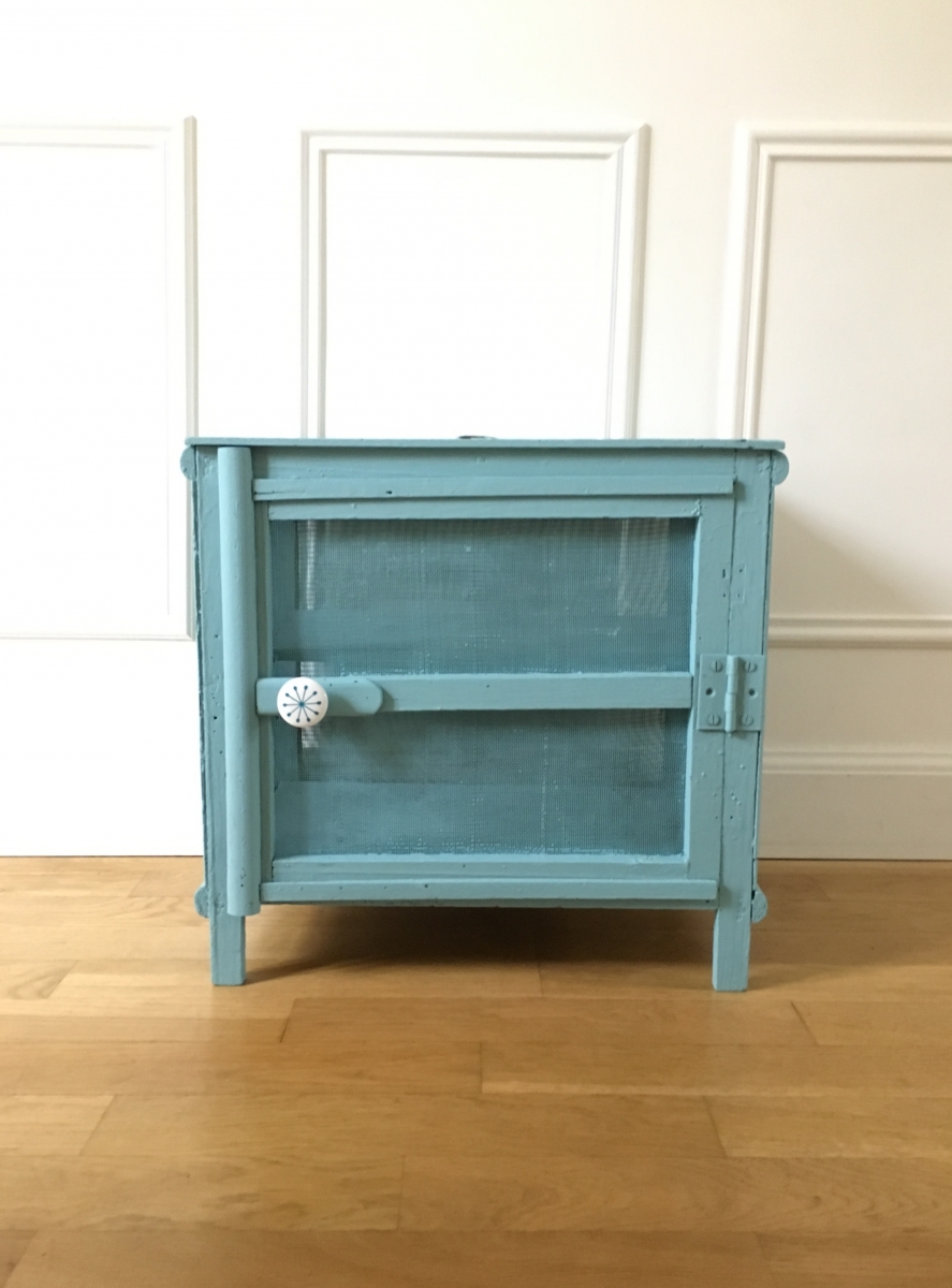 Petite et ancienne cage à fromages qui servira tout aussi bien pour les pots de confiture et tout un tas d’autres réserves alimentaires.