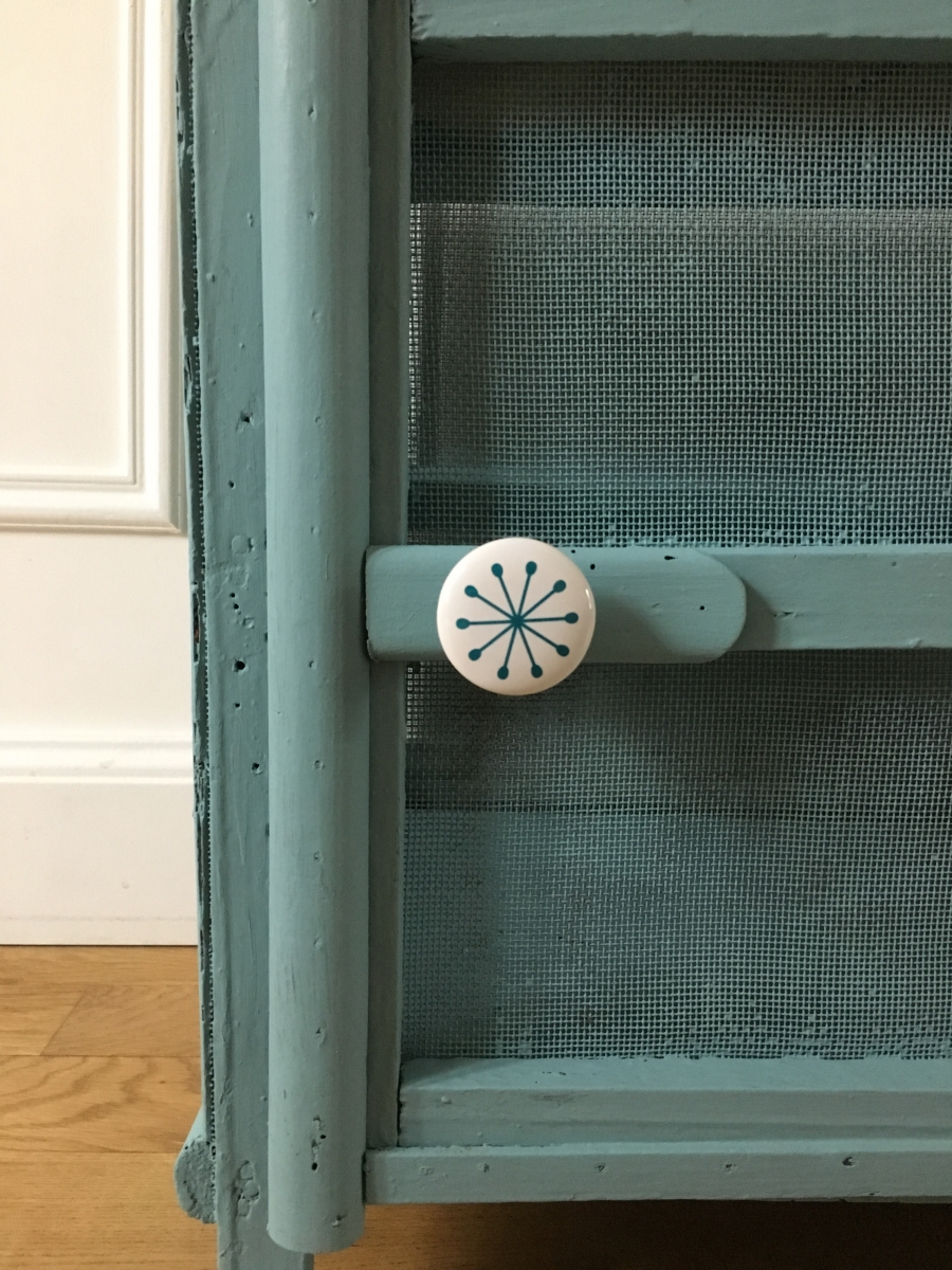 La poignée manquait alors une petite porcelaine de chez Bloomingville assortie à la peinture est venue terminer ce look 100% vintage!