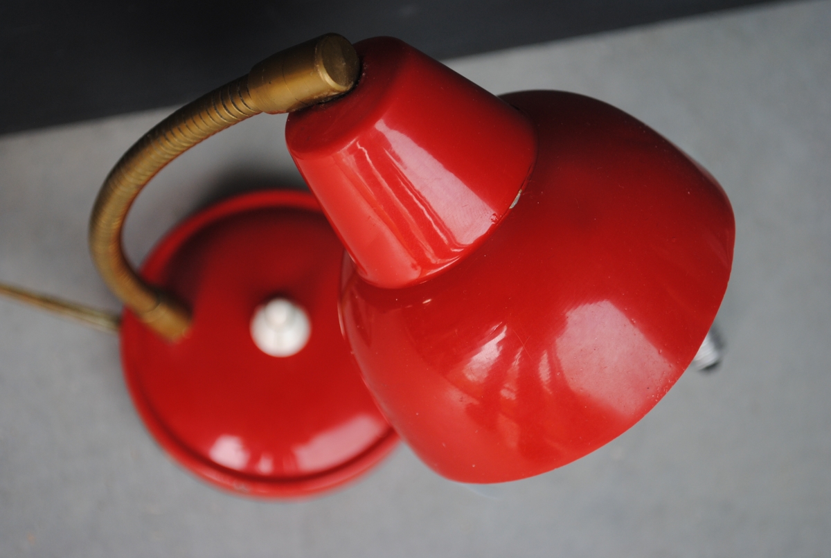 Petite lampe bureau métal rouge année 70 , très mini hauteur 24 cm .Bon état de fonctionnement , ampoule e14 a vis .