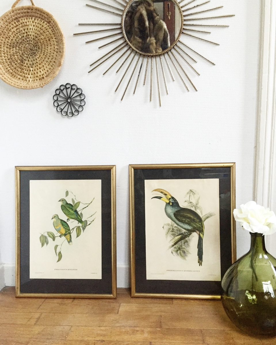 Je vous propose ces deux magnifiques cadres oiseaux anciens , de belles couleurs tres actuelles .